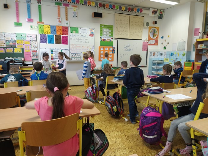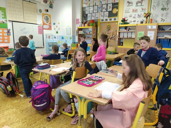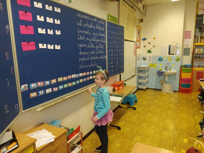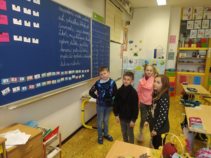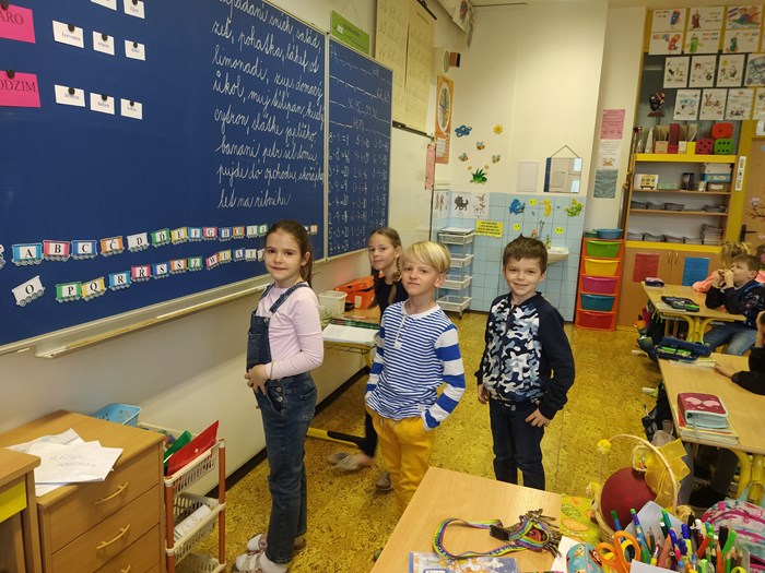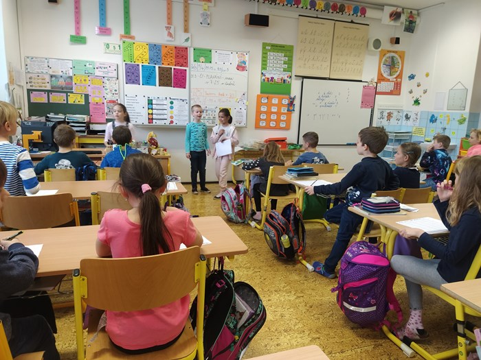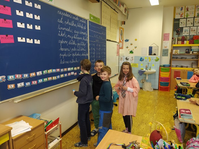 Ve vyučování jsme řešili úkoly naruby, např. v českém jazyce jsme měli vše naopak – kde mělo být i – í, bylo y – ý, zamotala se nám písmena z abecedy, v matematice byly výsledky špatně, v prvouce se nám zamíchaly názvy jarních květin, v ročním období jejich měsíce….krom toho, místo paní učitelky, učily děti…..smích celým dnem nebral konce.