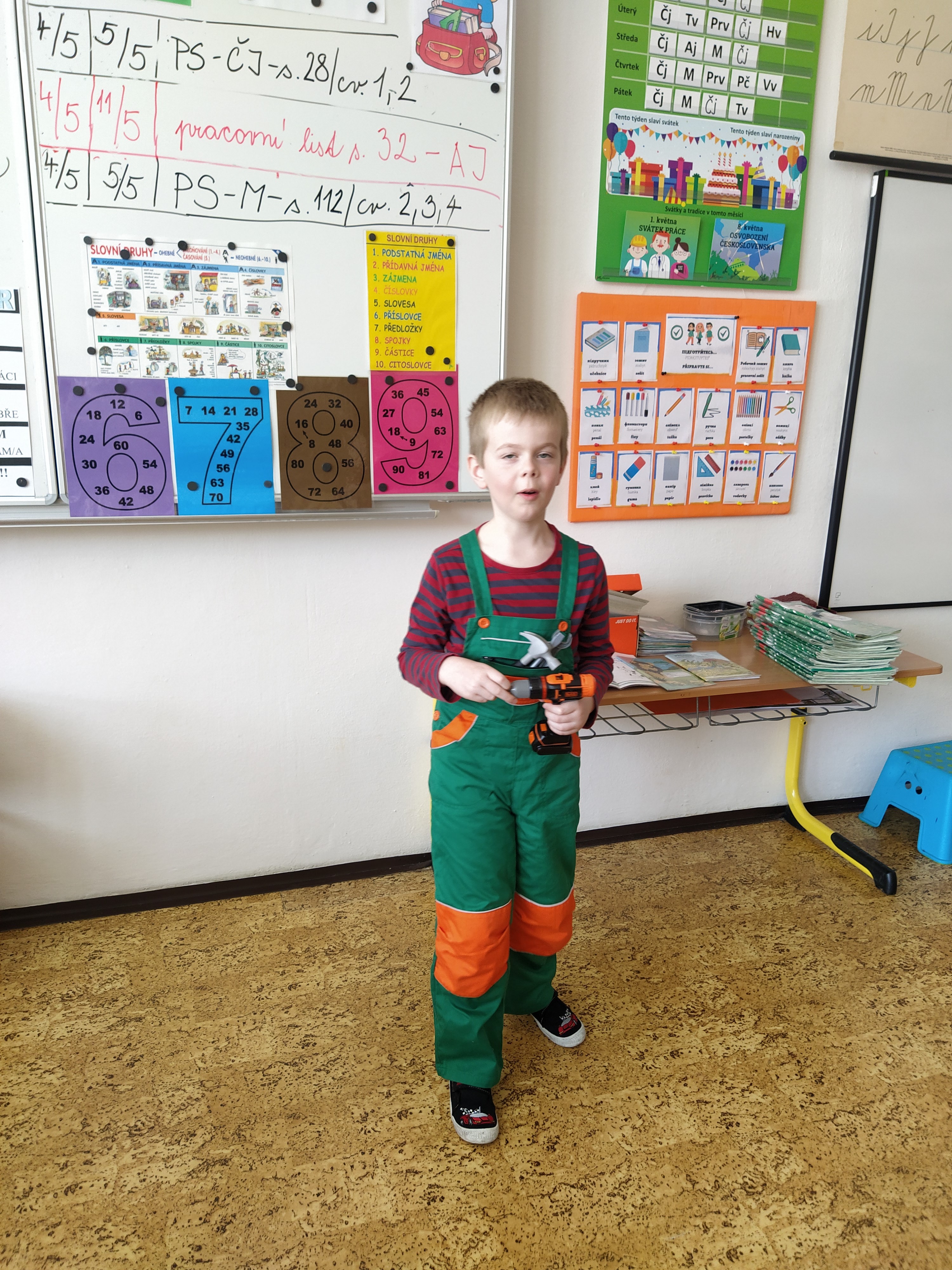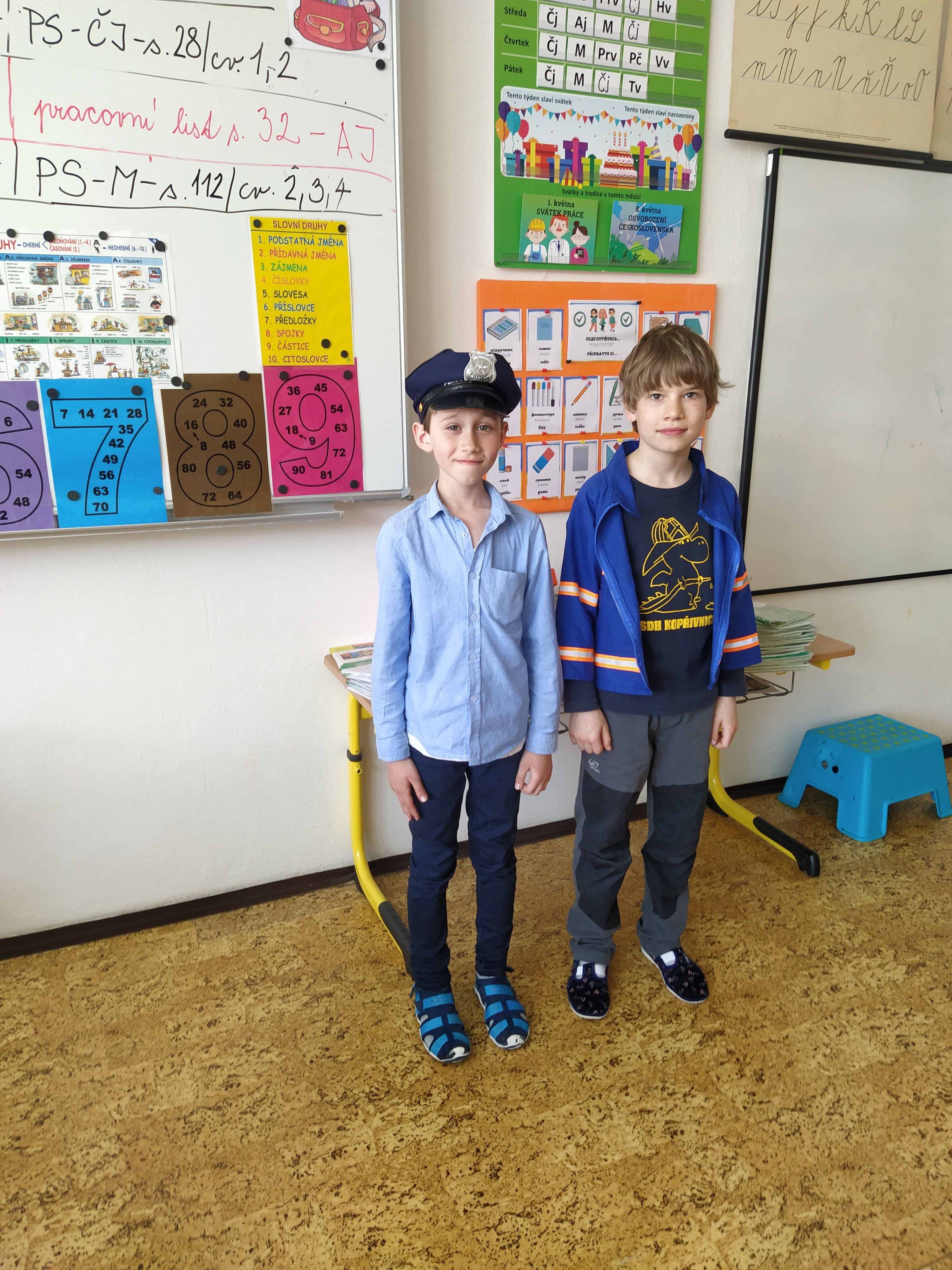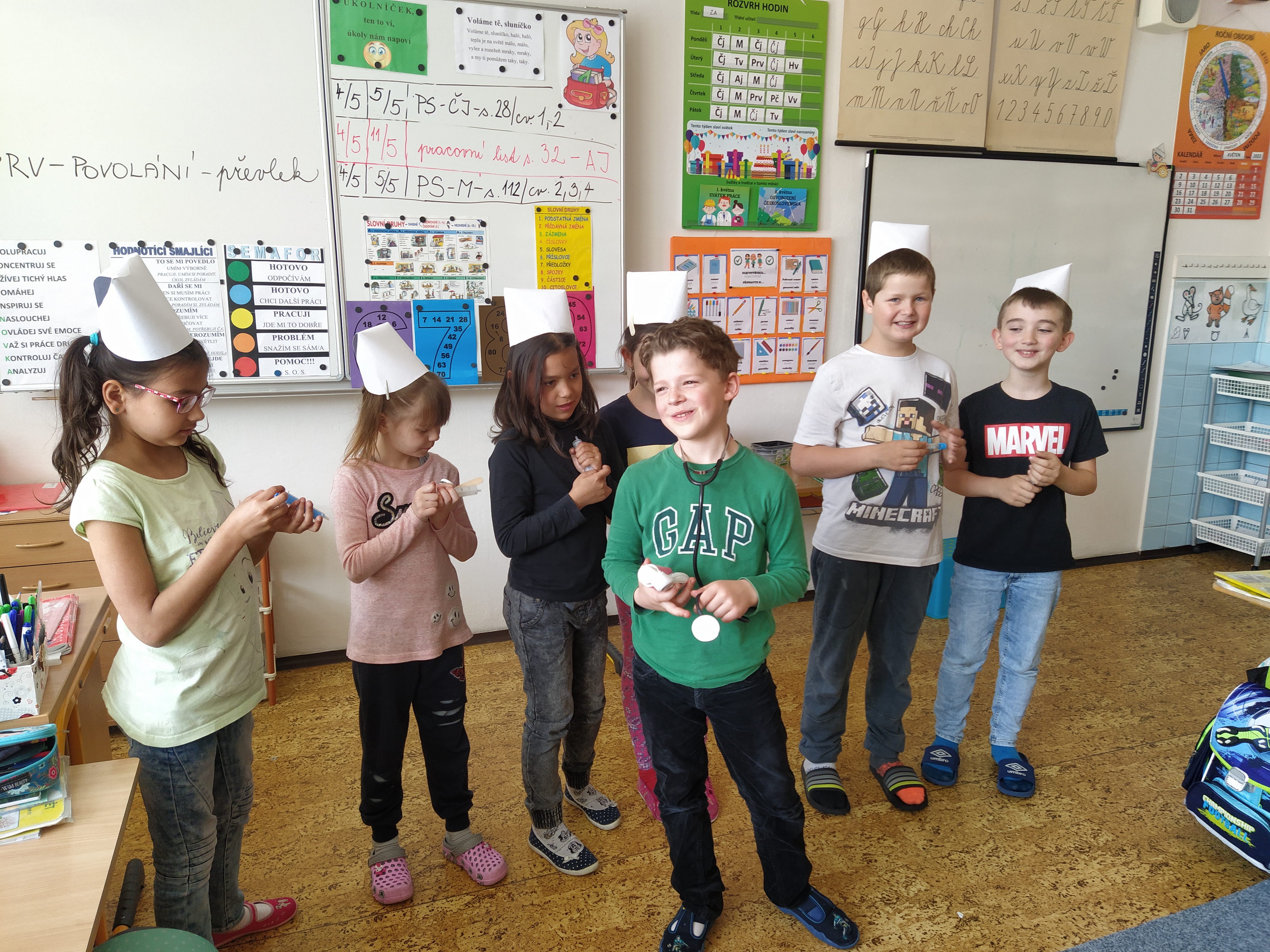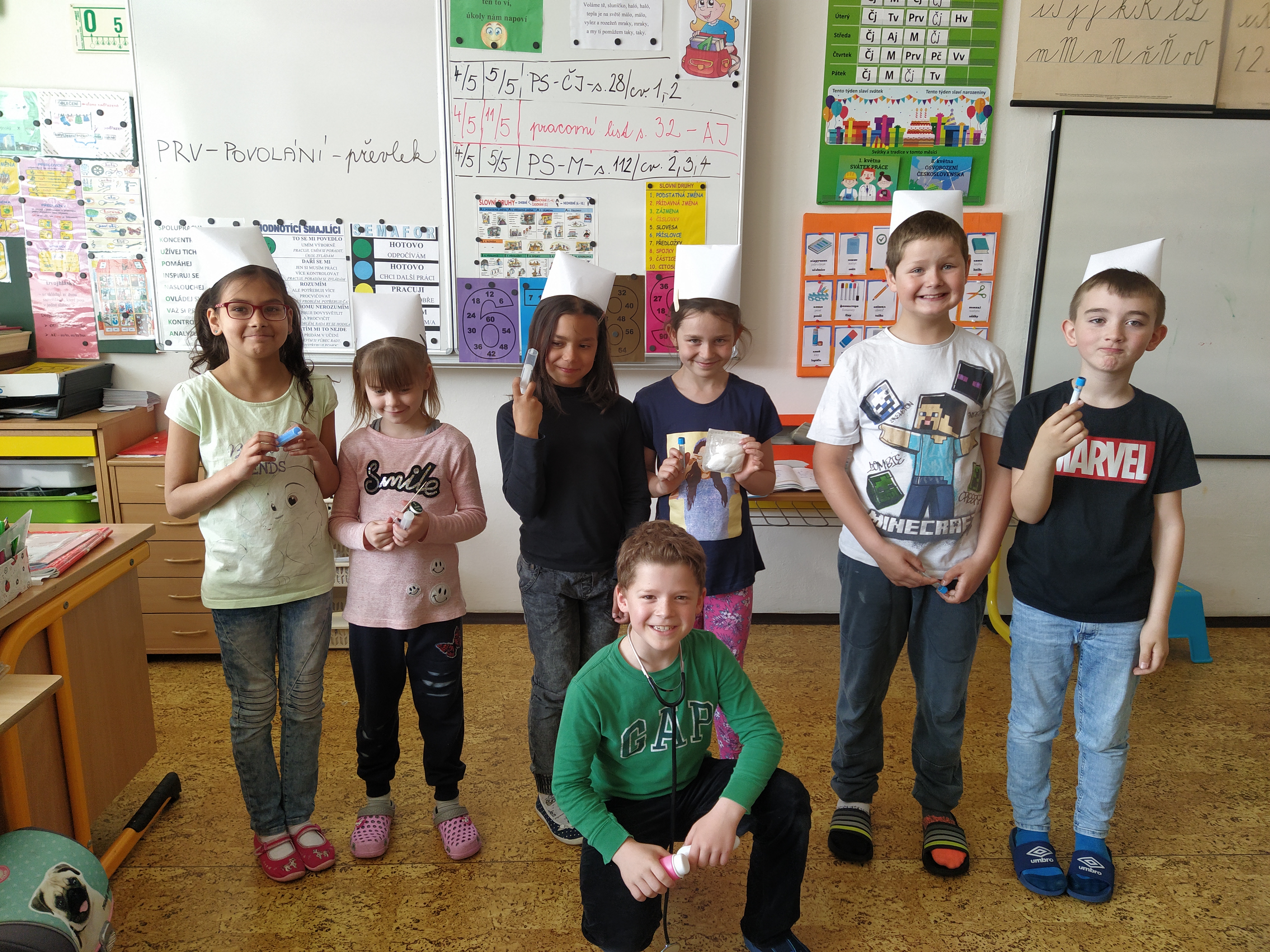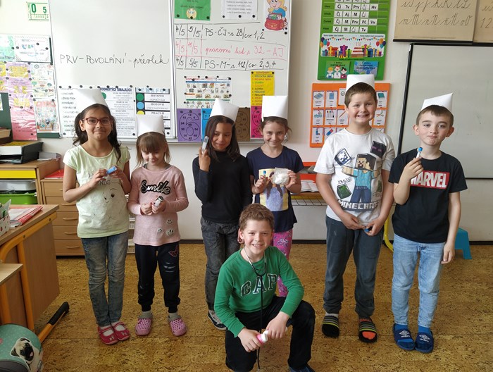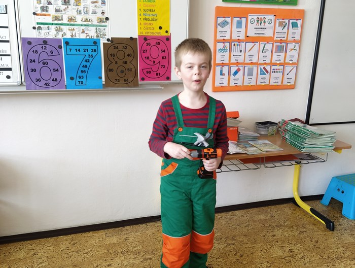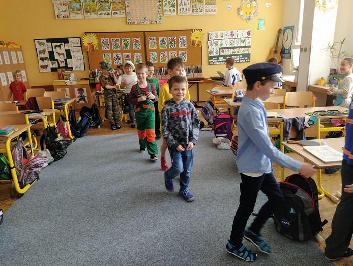 V prvouce jsme si povídali o povolání dospělých – děti nám předvedly různé profese – lékař, zdravotní sestra, fotbalista, kadeřnice, zvěrolékařka, hokejista, opravář, policista, hasič…..a mnohé další. Každý nám o sobě řekl, kde pracuje, co dělá, co ke své práci potřebuje.