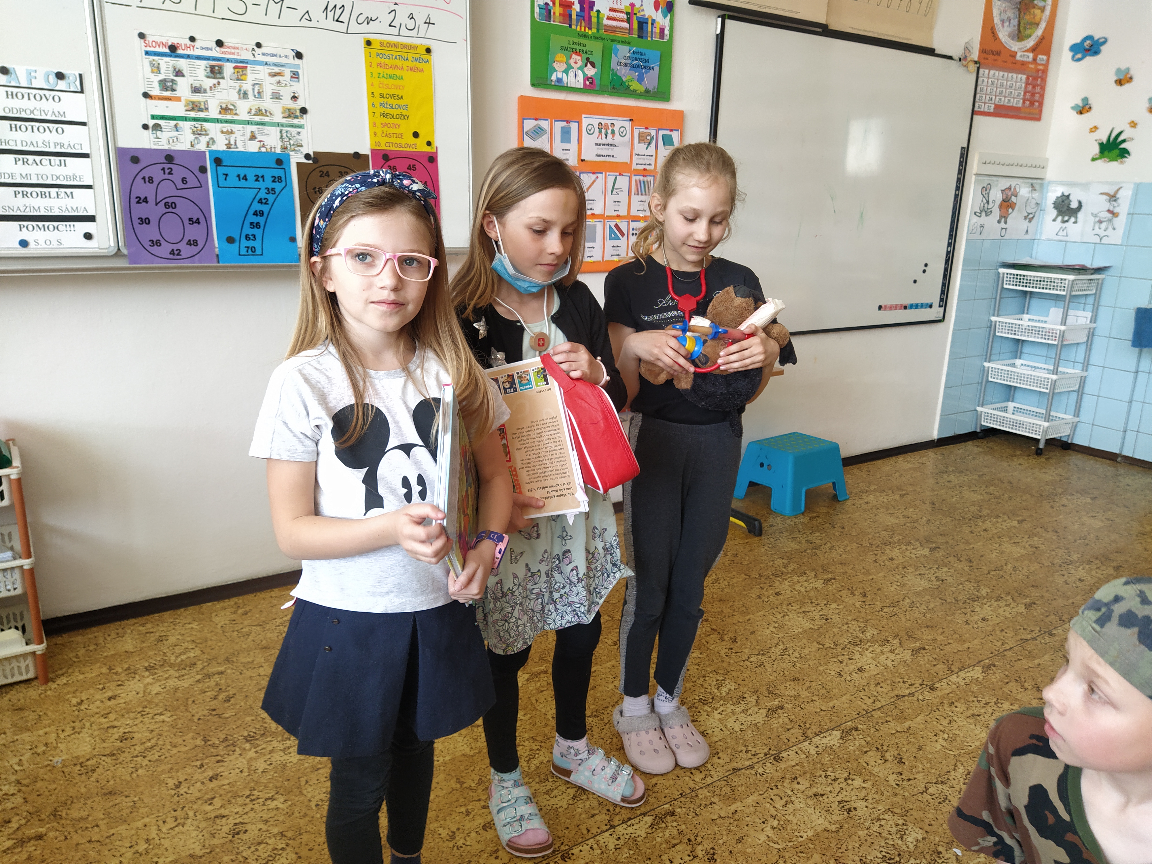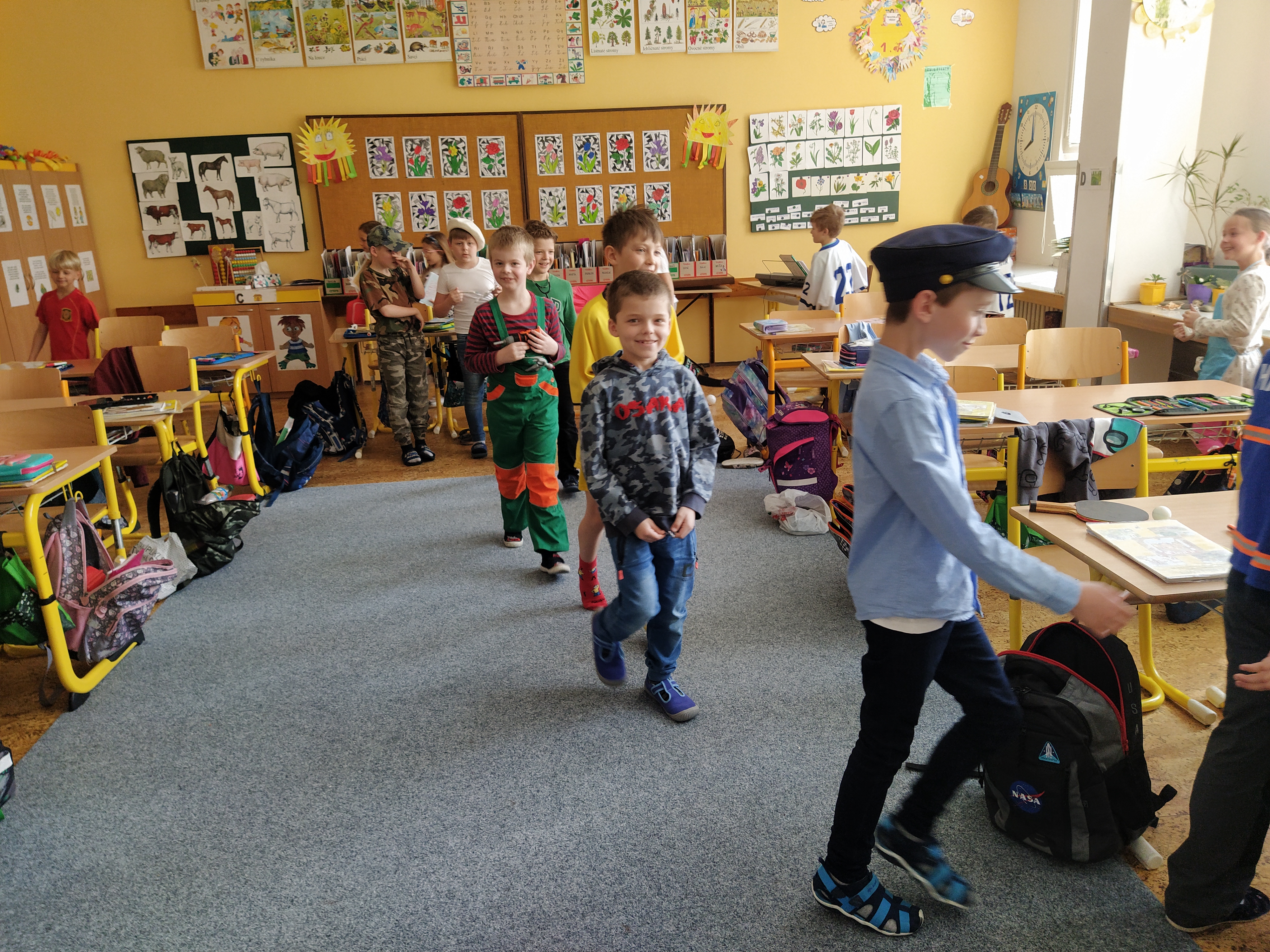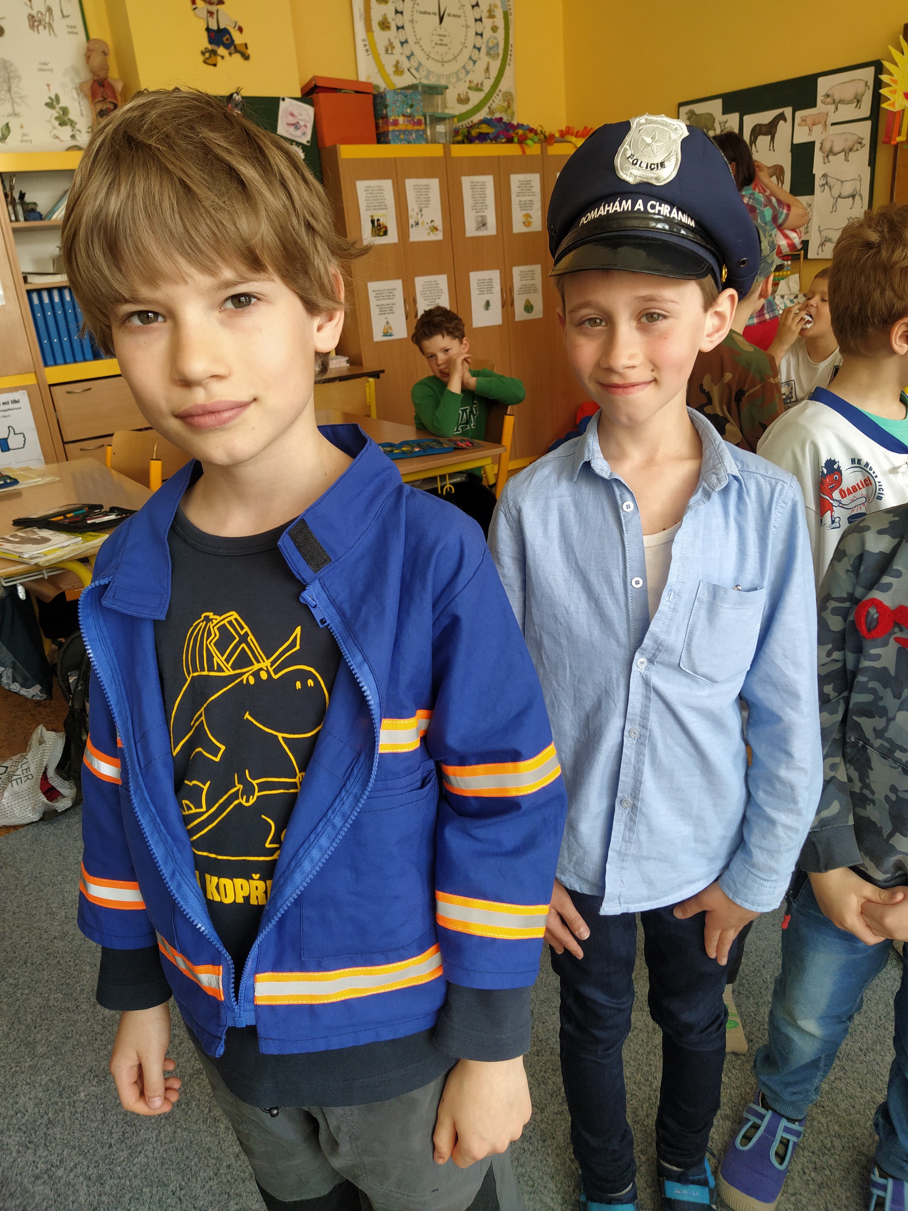 V prvouce jsme si povídali o povolání dospělých – děti nám předvedly různé profese – lékař, zdravotní sestra, fotbalista, kadeřnice, zvěrolékařka, hokejista, opravář, policista, hasič…..