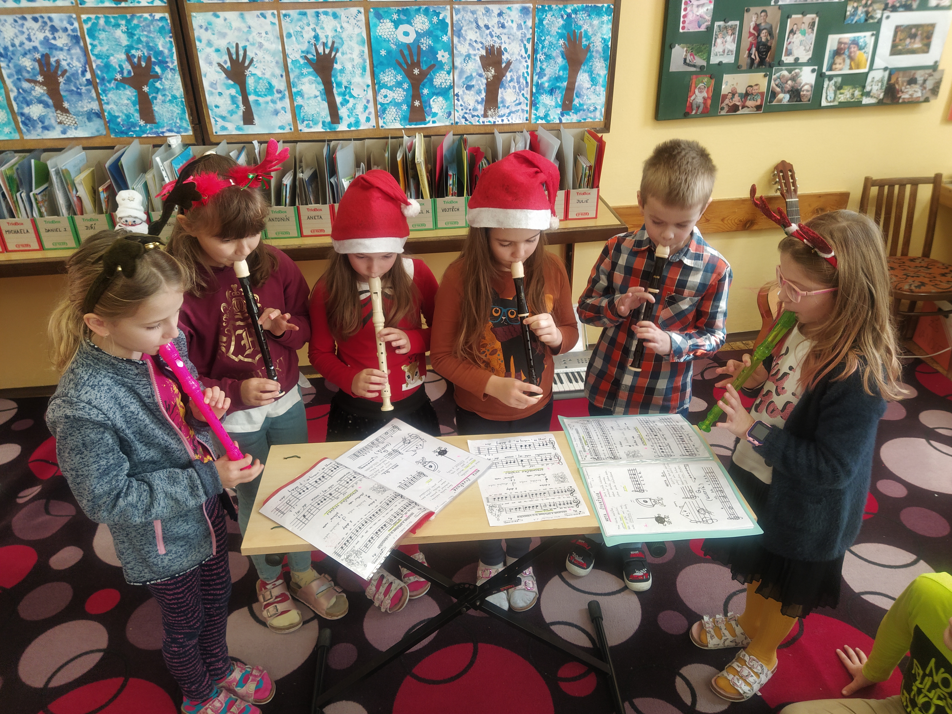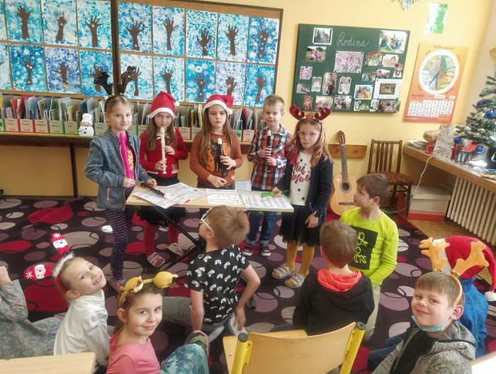 Na poslední školní den v roce 2021 se děti moc těšily. Čekání na nejkrásnější svátky v roce – Vánoce, jsme si v naší třídě zpříjemnili besídkou. Nechybělo vyprávění o Vánocích, zpívání koled, zkoušení vánočních tradic, ochutnávka cukroví a také malé dárečky pro své kamarády. Děti, které navštěvují kroužek Flétničky, si pro nás připravily vystoupení, které se nám moc líbilo. Všichni jsme si besídku užili a na závěr si vzájemně popřáli kouzelné vánoční svátky plné klidu a pohody.