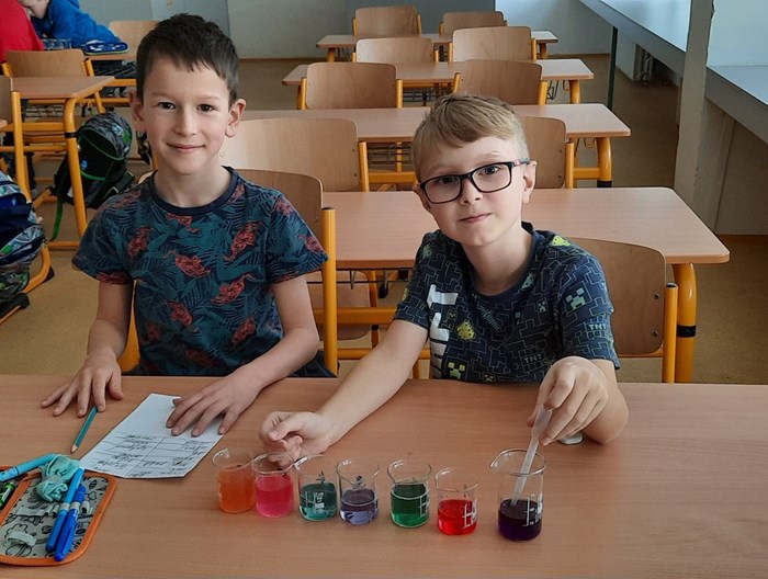 Malí badatelé s velkým zaujetím zkoumali fyzikální a chemické jevy v přírodě: elektrostatickou a magnetickou sílu, vedení elektrického proudu v obvodu, fyzikální vlastnosti vody, kyselost a zásaditost roztoků a také vzlínavost barev.