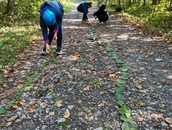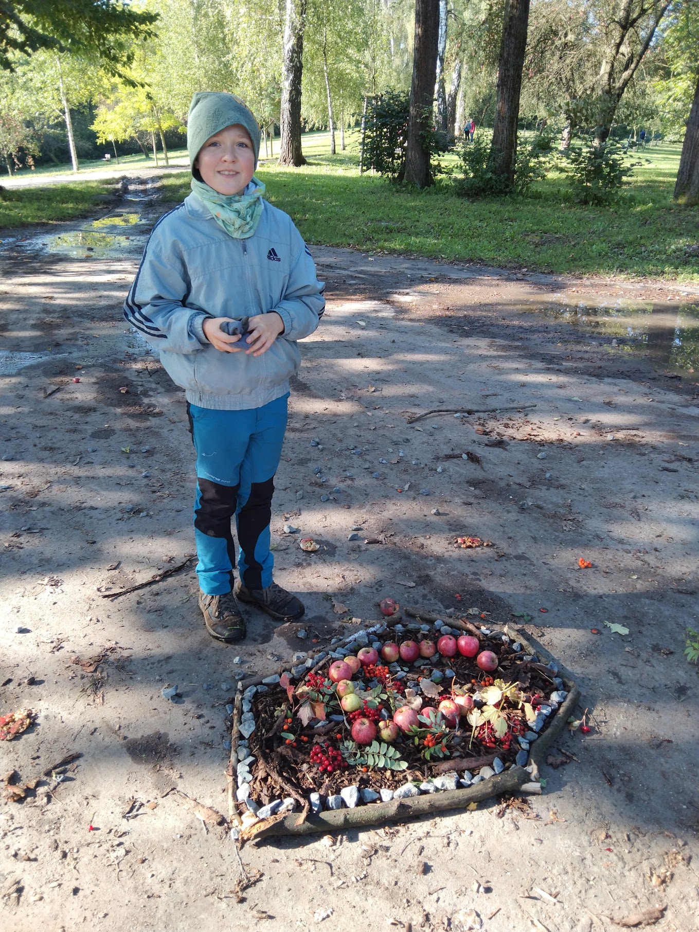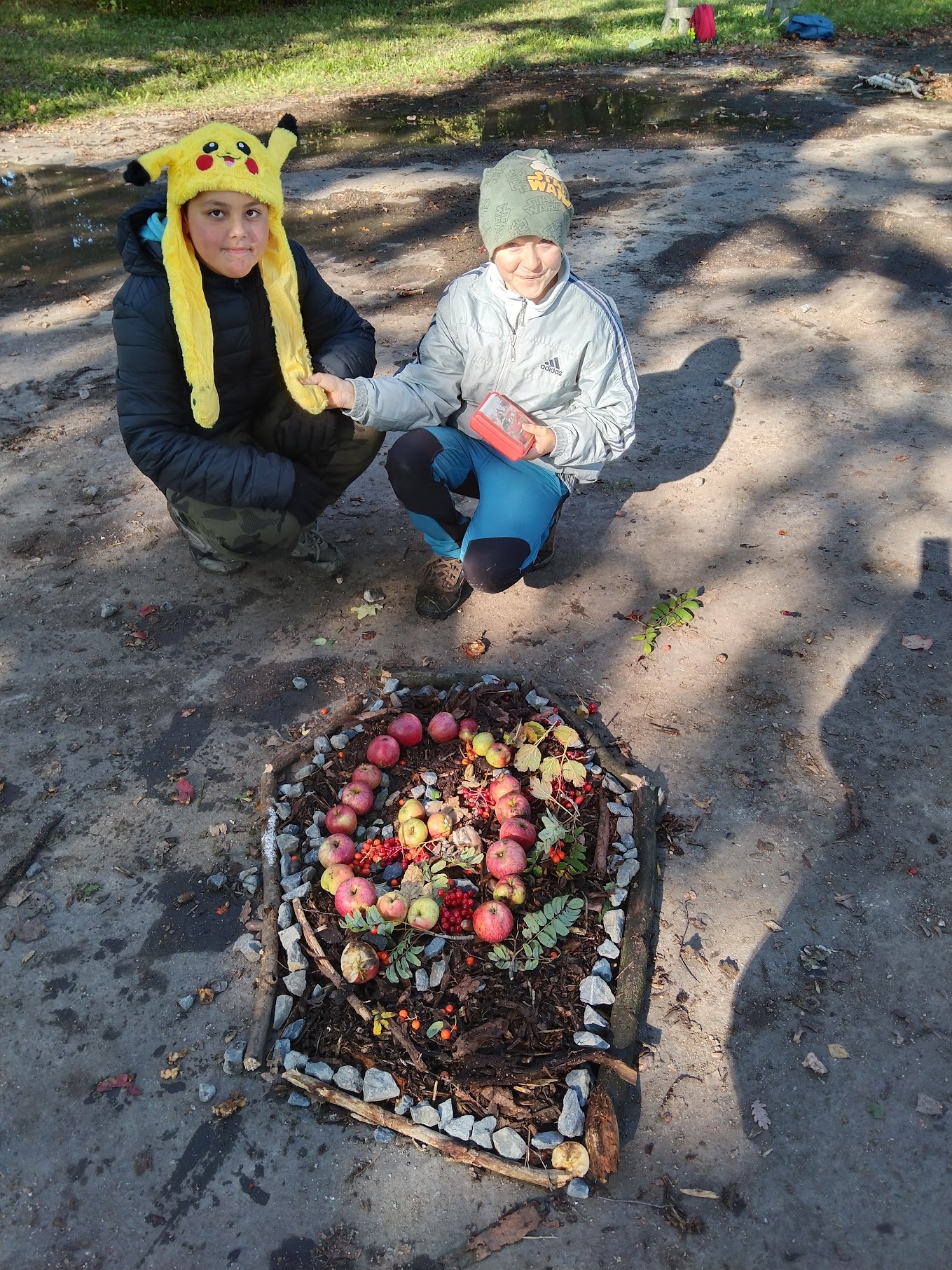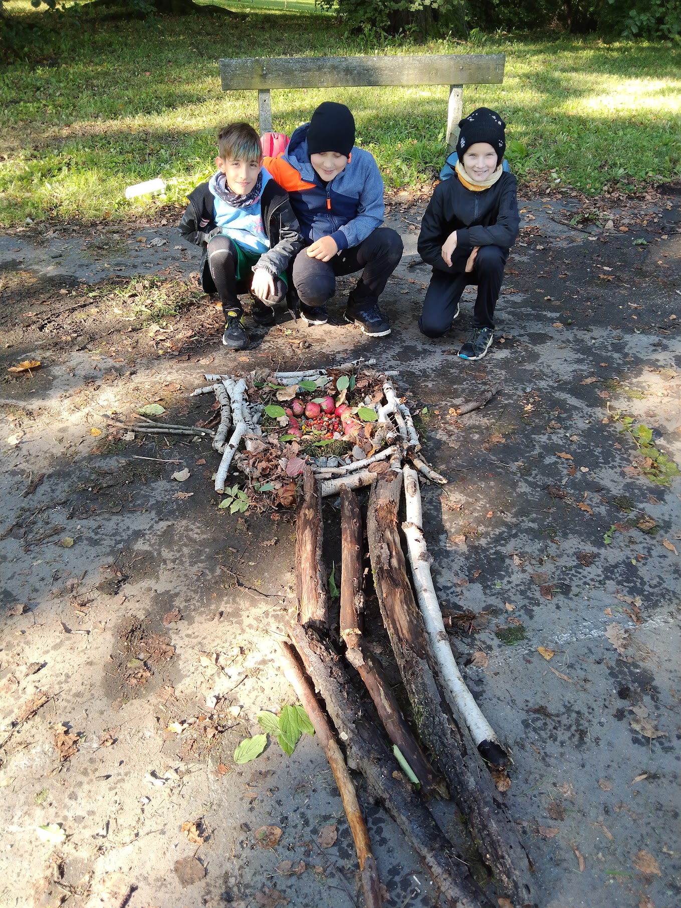Zde měli žáci možnost vyzkoušet si výtvarně tvořit venku a dle vlastní fantazie splnit zadaný úkol – poskládat siv čase podzimním z přírodnin vlastní mandalu.Ke své práci využili kaštany, žaludy, šípky, oříšky, listy, klacíky, šišky, kůry a další plody.Žáci pracovali ve skupinách a myslím, že se jim práce povedla. Hlavním cílem bylo vyzkoušet si a prožít si něco novéhomimo prostory klasické třídy a načerpat pozitivní energii z přírody kolem nás.