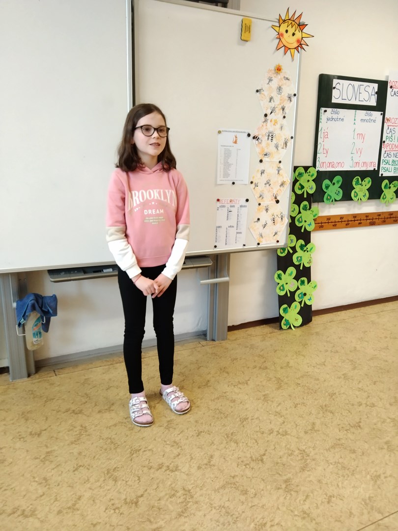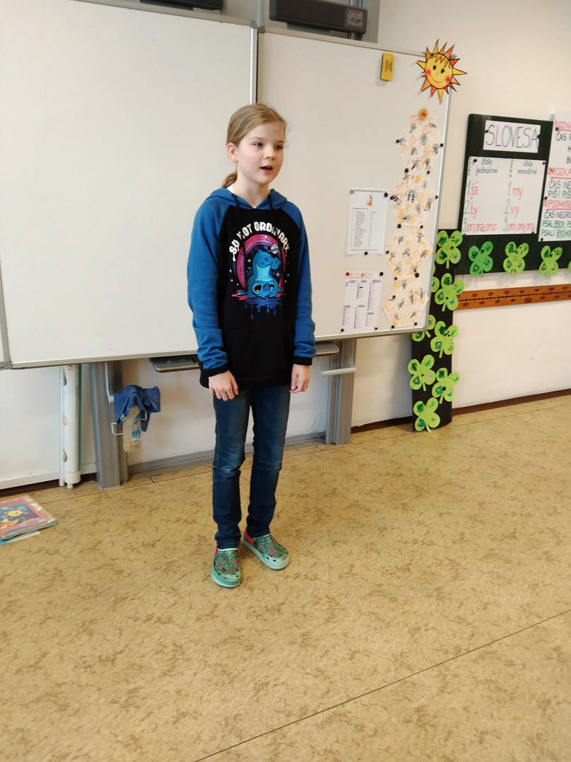Ve středu 22. 3. 2023 se na prvním stupni uskutečnilo školní kolo recitační soutěže, které se zúčastnilo na patnáct odvážných recitátorů ze 4. a 5. tříd.