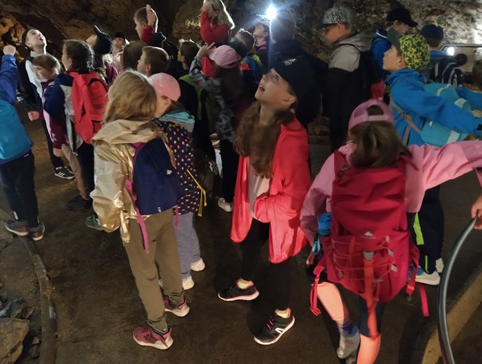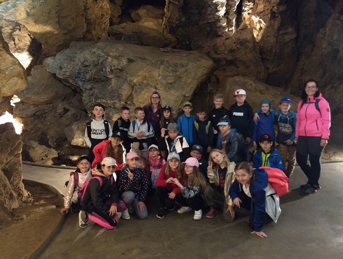 Ve čtvrtek 15.6.2023 se obě třetí třídy vydaly vlakem na školní výlet do Zbrašovské aragonitové jeskyně v Teplicích nad Bečvou, které jsou vyhlášeny národní přírodní památkou pro ochranu hydrotermální oblasti evropského významu, jež nemá v České republice obdoby. Prohlédli jsme si unikátní minerálovou výzdobu jeskyní – raftové stalagmity, keříčky aragonitu a „koblihové“ povlaky stěn s poutavým výkladem paní průvodkyně. Děti v podzemí na moment zažily také totální tmu.