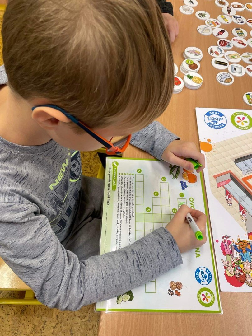 Paní lektorka seznámila žáky se správnými zásadami zdravého stravování a představila žákům tzv. zdravý potravinový talíř. Chvilka povídání opravdu stačila k tomu, aby si žáci mohli vyzkoušet hru s názvem Nákupní centrum. K této hře dostali žetony s obrázky zdravé stravy a tyto žetony přikládali do správného obchodu. Dále si žáci vyluštili křížovky, kde tajenka byla opět zaměřená na zdravou stravu. Program trval dvě vyučovací hodiny a paní lektorka měla k dispozici spoustu pomůcek a potraviny potřebné pro výuku.