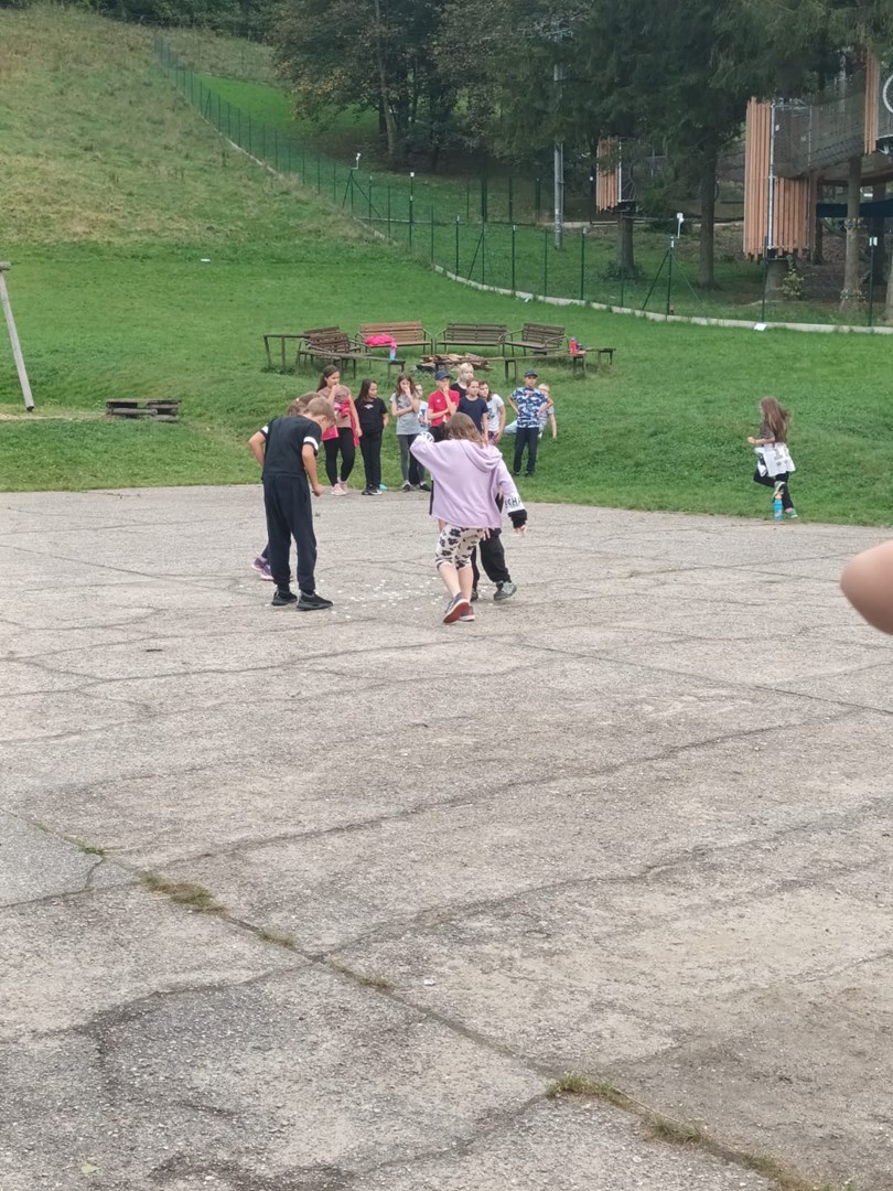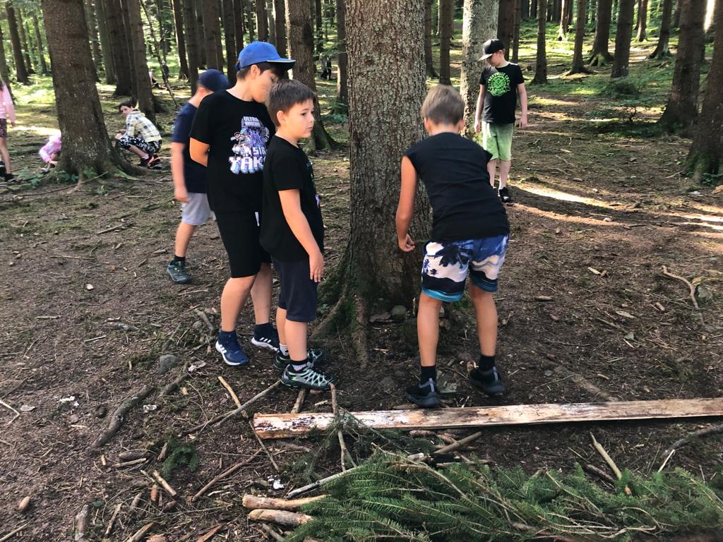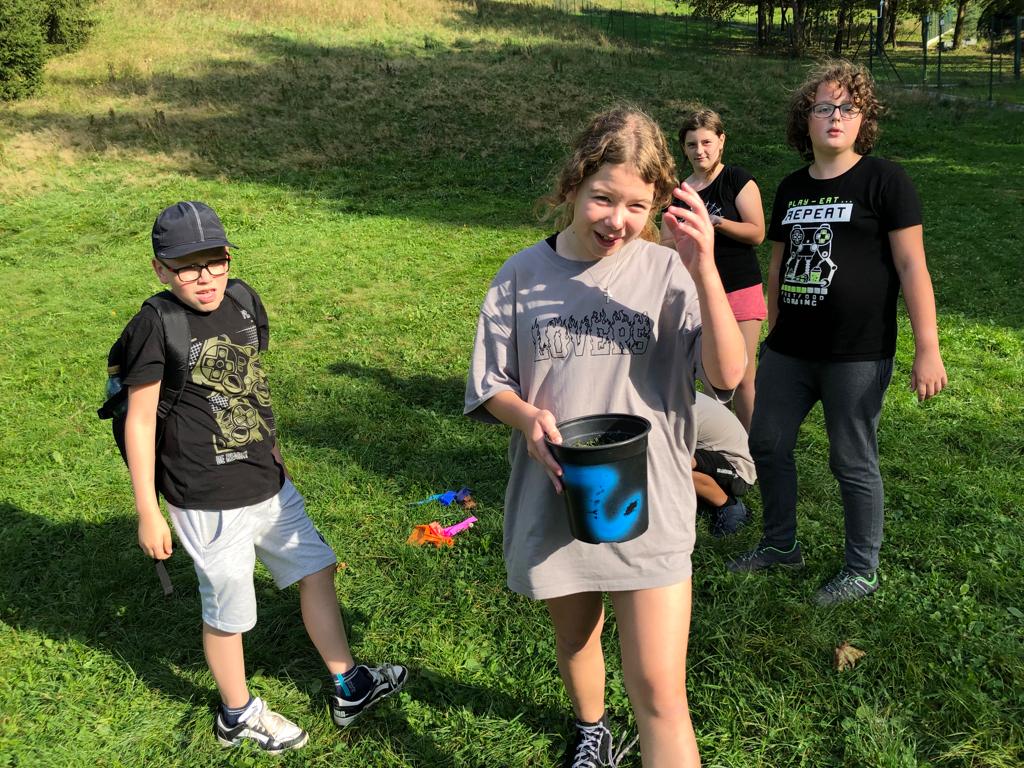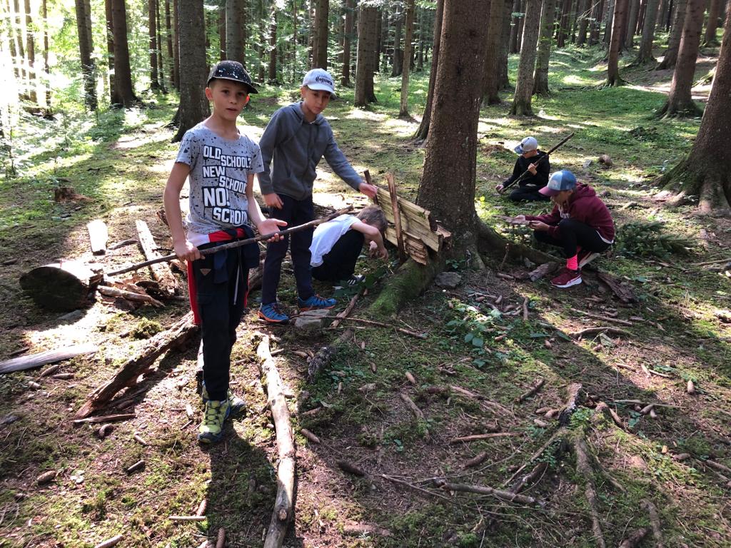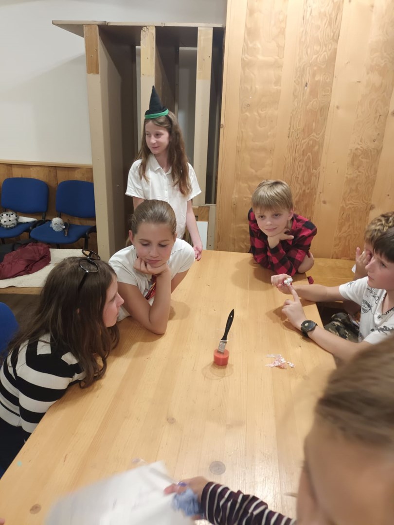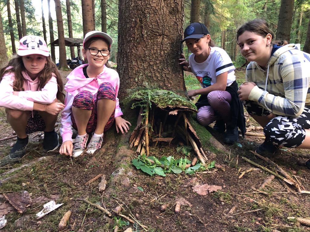 Škola v přírodě pokračuje dále a my jsme všichni plní zážitků. Večer plný čar a kouzel? S “FOKUSÁKY” není žádný problém . V podvečer začaly velké přípravy, všichni jsme si oblékli kostýmy a zkrášlovali své obličeje. Tajemství kouzelného klobouku nás napínalo až do konce úterního dne. Havraspár, Zmijozel, Mrzimor nebo Nebelvír?? Na nic jiného jsme nemysleli. Středeční pomyslnou třešničkou na dortu byla stezka důvěry. Všichni jsme si vyzkoušeli, jaké to je, když má člověk zrakovou vadu a musí plně důvěřovat svému průvodci. Zakončení stezky důvěry bylo u ohniště, kde jsme si vyprávěli podivuhodné příběhy. A máme tady čtvrtek. Dnešní Bradavický expres vyjel směrem do Karolinky, kde jsme si prohlédli v obchůdku výrobky ze skla. Nezapomněli jsme ani na kamaráda Dobbyho a postavili jsme mu v začarovaném lese chýše, ve které se nakonec rozhodl bydlet - nám zůstalo utajeno. Míchání lektvarů? Obchodování? Pěstování Mandragory? Tak to pro nás není žádný problém. Každý den si totiž užíváme spoustu zábavných sportovních her.