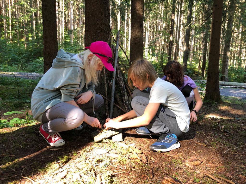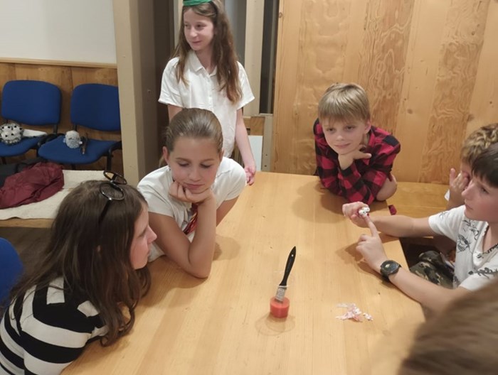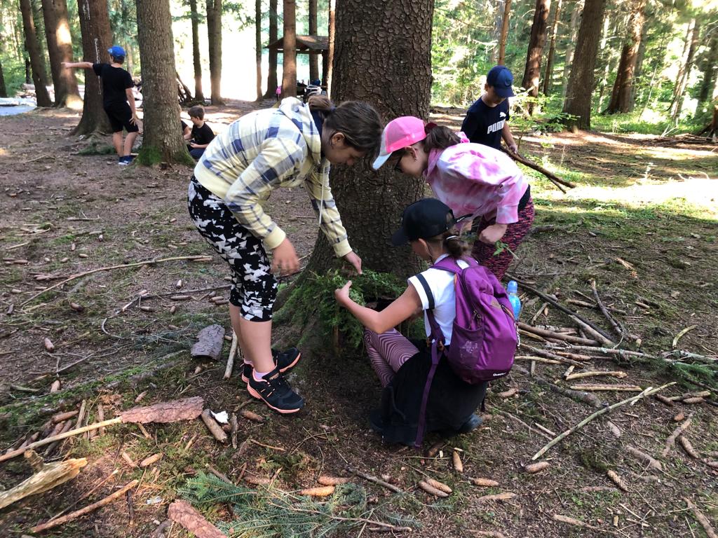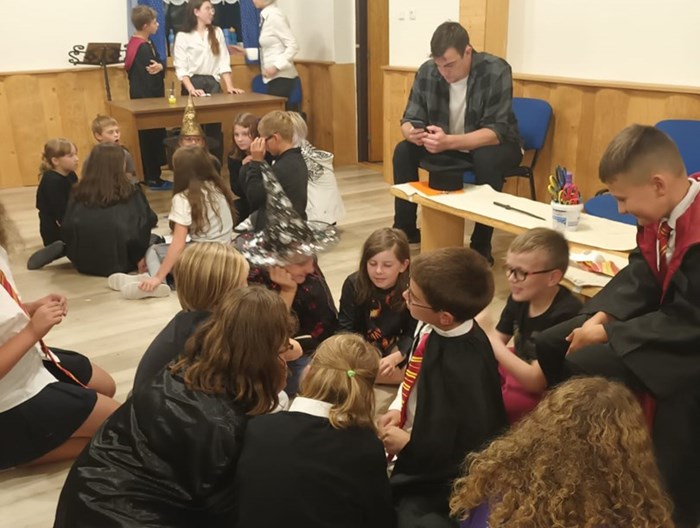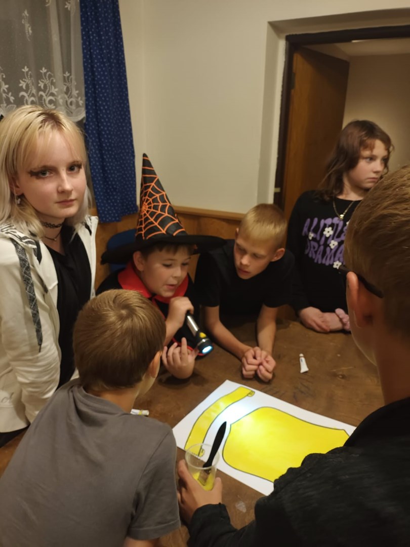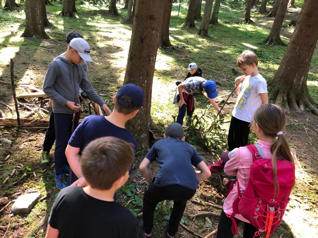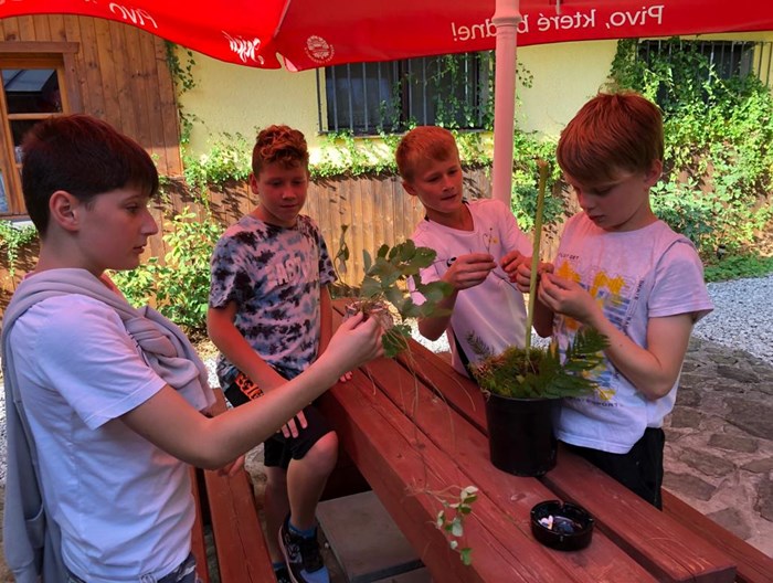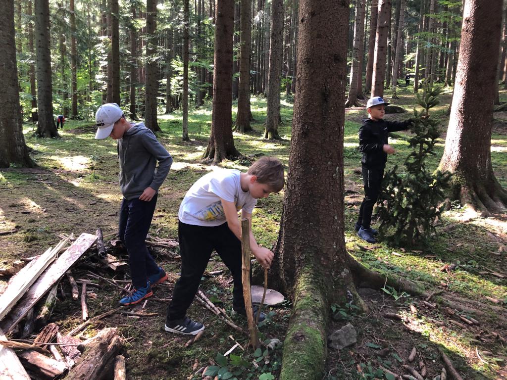 Škola v přírodě pokračuje dále a my jsme všichni plní zážitků. Večer plný čar a kouzel? S “FOKUSÁKY” není žádný problém . V podvečer začaly velké přípravy, všichni jsme si oblékli kostýmy a zkrášlovali své obličeje. Tajemství kouzelného klobouku nás napínalo až do konce úterního dne. Havraspár, Zmijozel, Mrzimor nebo Nebelvír?? Na nic jiného jsme nemysleli. Středeční pomyslnou třešničkou na dortu byla stezka důvěry. Všichni jsme si vyzkoušeli, jaké to je, když má člověk zrakovou vadu a musí plně důvěřovat svému průvodci. Zakončení stezky důvěry bylo u ohniště, kde jsme si vyprávěli podivuhodné příběhy. A máme tady čtvrtek. Dnešní Bradavický expres vyjel směrem do Karolinky, kde jsme si prohlédli v obchůdku výrobky ze skla. Nezapomněli jsme ani na kamaráda Dobbyho a postavili jsme mu v začarovaném lese chýše, ve které se nakonec rozhodl bydlet - nám zůstalo utajeno. Míchání lektvarů? Obchodování? Pěstování Mandragory? Tak to pro nás není žádný problém. Každý den si totiž užíváme spoustu zábavných sportovních her.