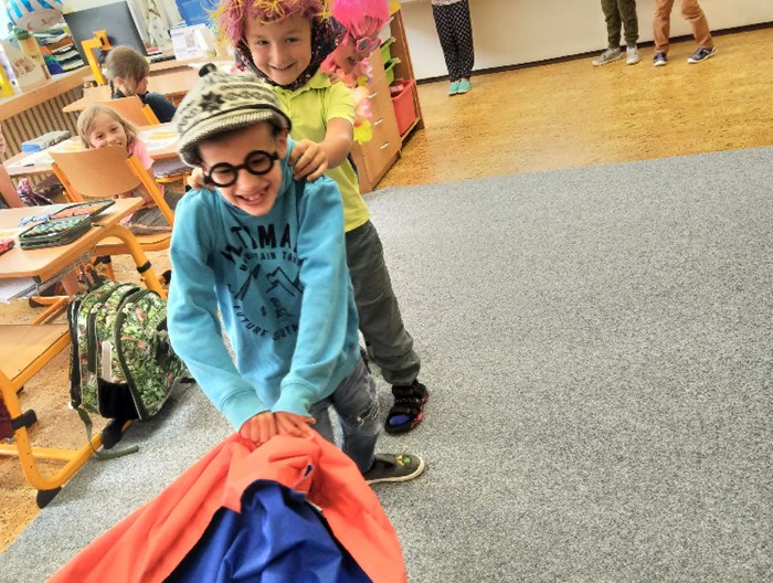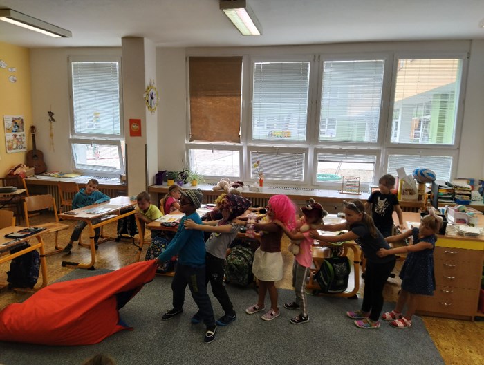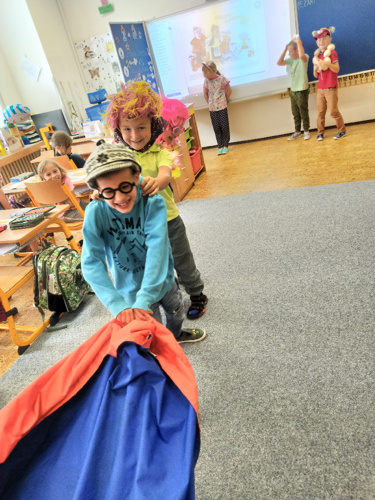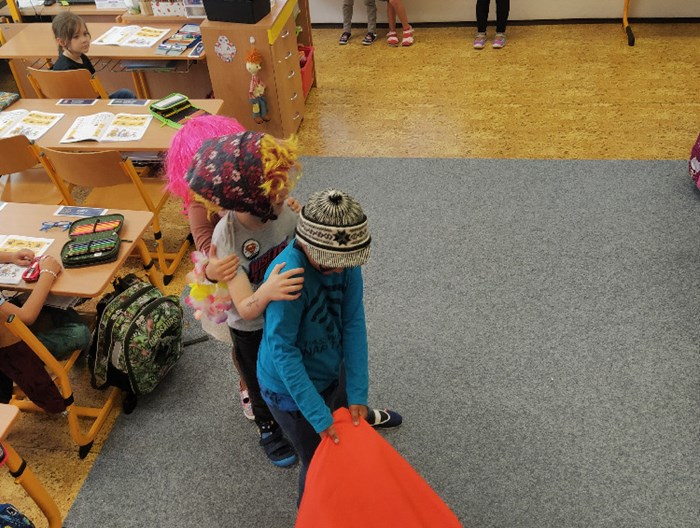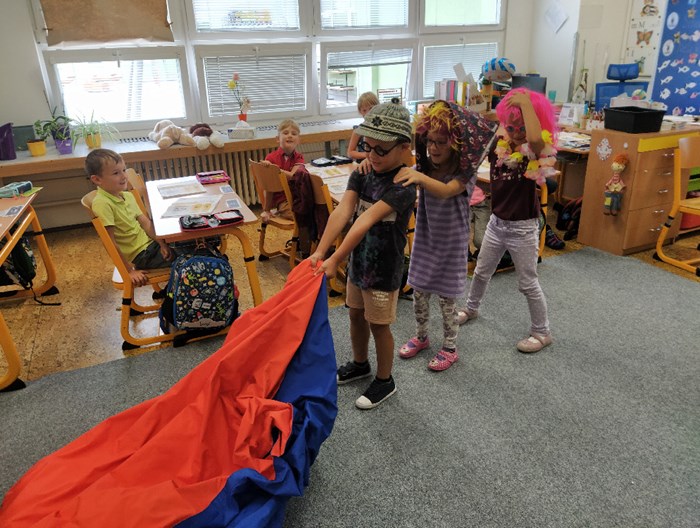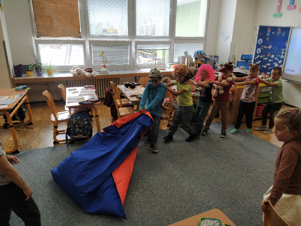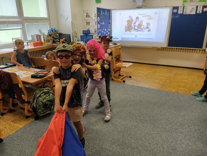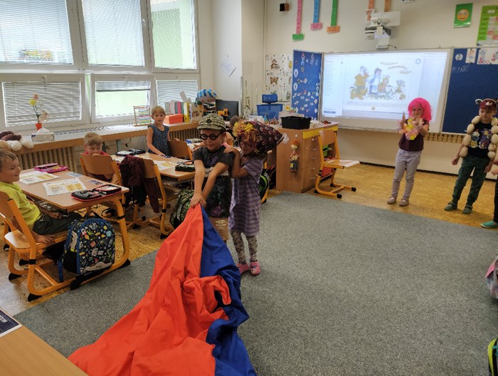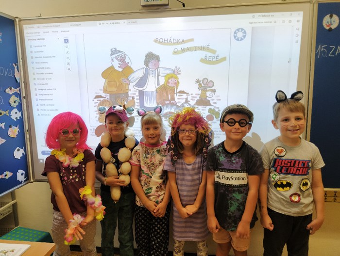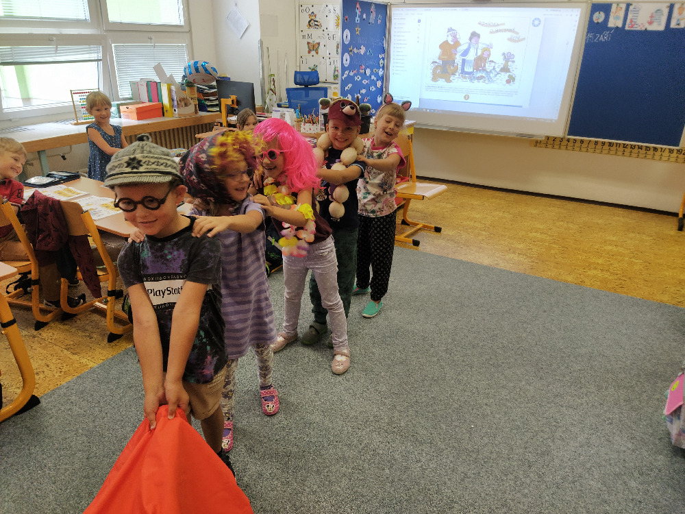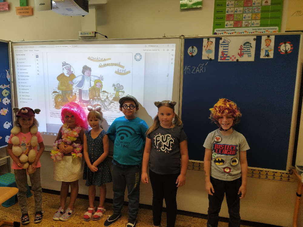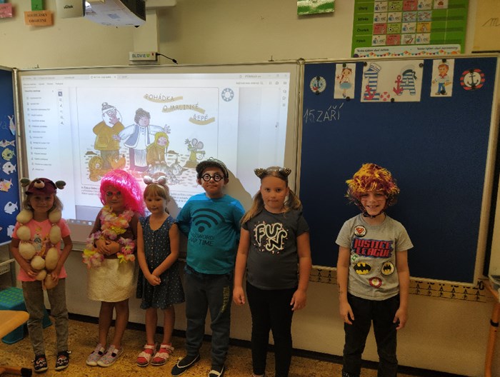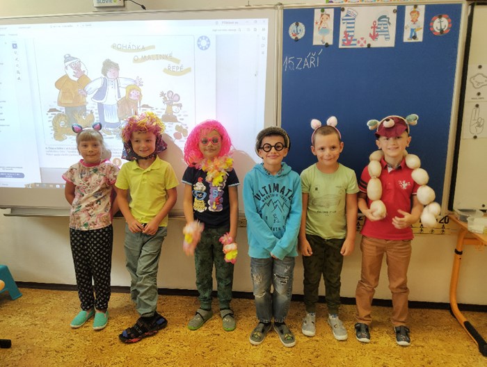 V předslabikářovém období je velmi důležité žáčky rozmluvit, rozhýbat, a proto jsme se s prvňáčky rozhodli pro dramatizaci oblíbené pohádky O veliké řepě, kterou všichni dobře znají. Převyprávěli jsme si ji, a nejen to. Tato pohádka prostupovala všemi předměty - zopakovali jsme si jejím prostřednictvím pojmy (před, za, mezi), počítali jsme, slabikovali, určovali hlásky ve slovech… Samotné dramatické ztvárnění také stálo za to, děti se projevily jako úžasní herci a den s pohádkou si bezvadně užily.