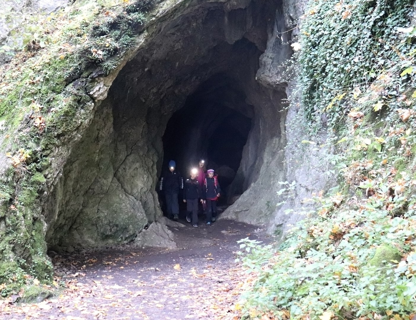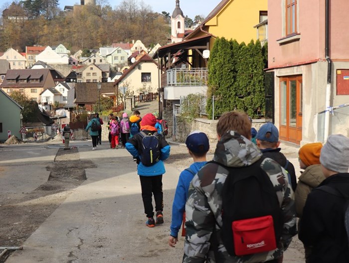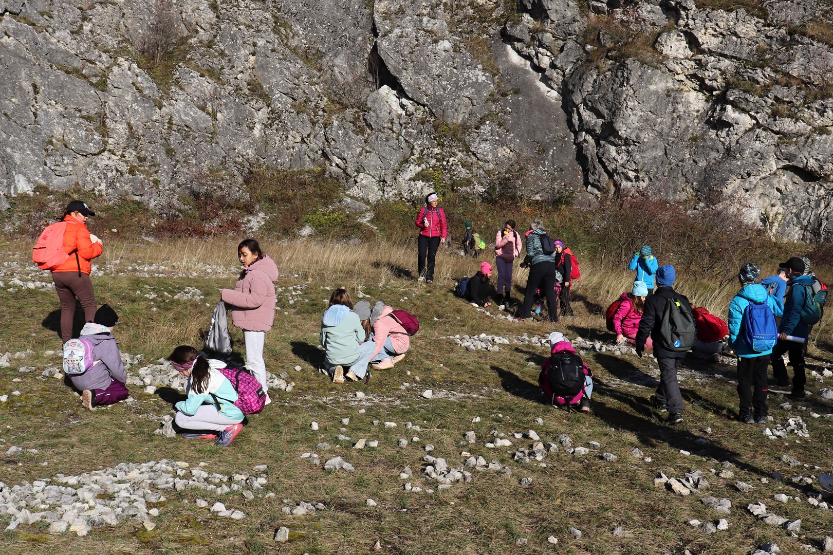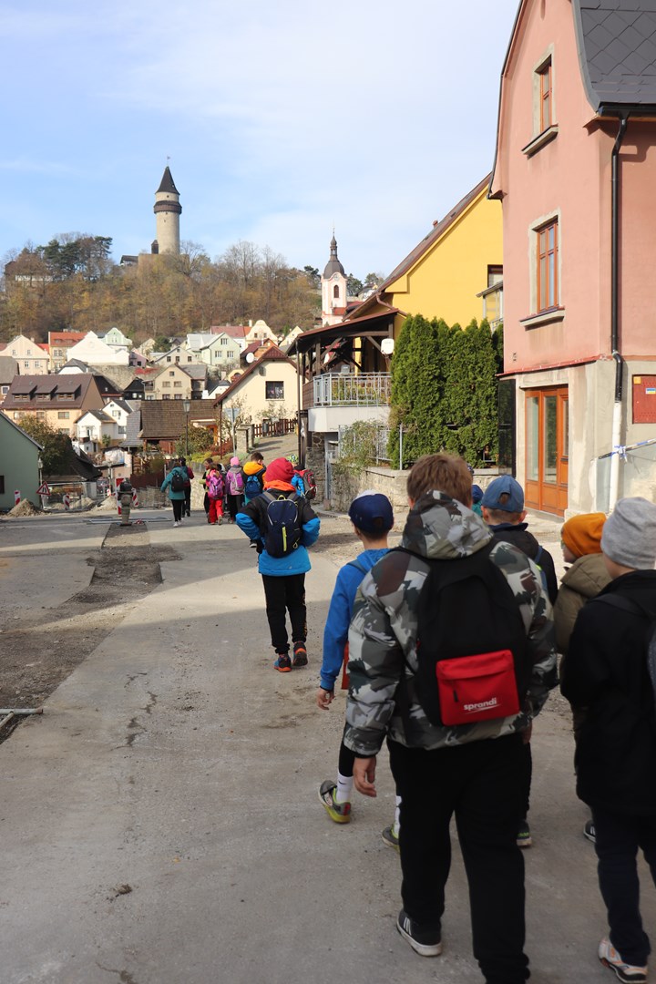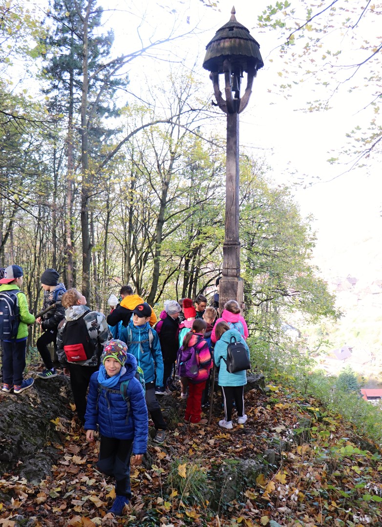 Exkurze poté pokračovala ve Štramberku. Zde si žáci prohlédli jeskyni Šipku, roubené domečky, historickou část města s překrásným náměstím a výhledem na Trúbu, připomněli si i těžbu vápence v nedalekém lomu Kotouč a ochutnali štramberskou specialitu – uši.