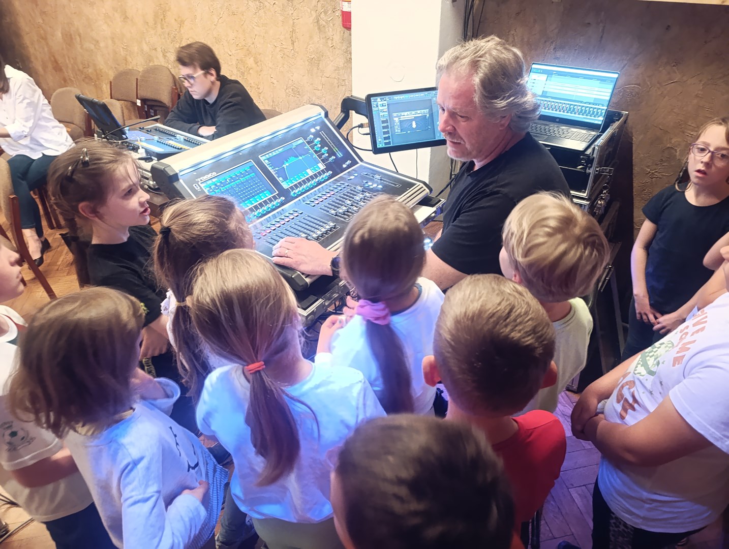 Žáci se nejprve seznámili s prostorem hudebního klubu, profesionální zvukovou technikou a nahlédli do