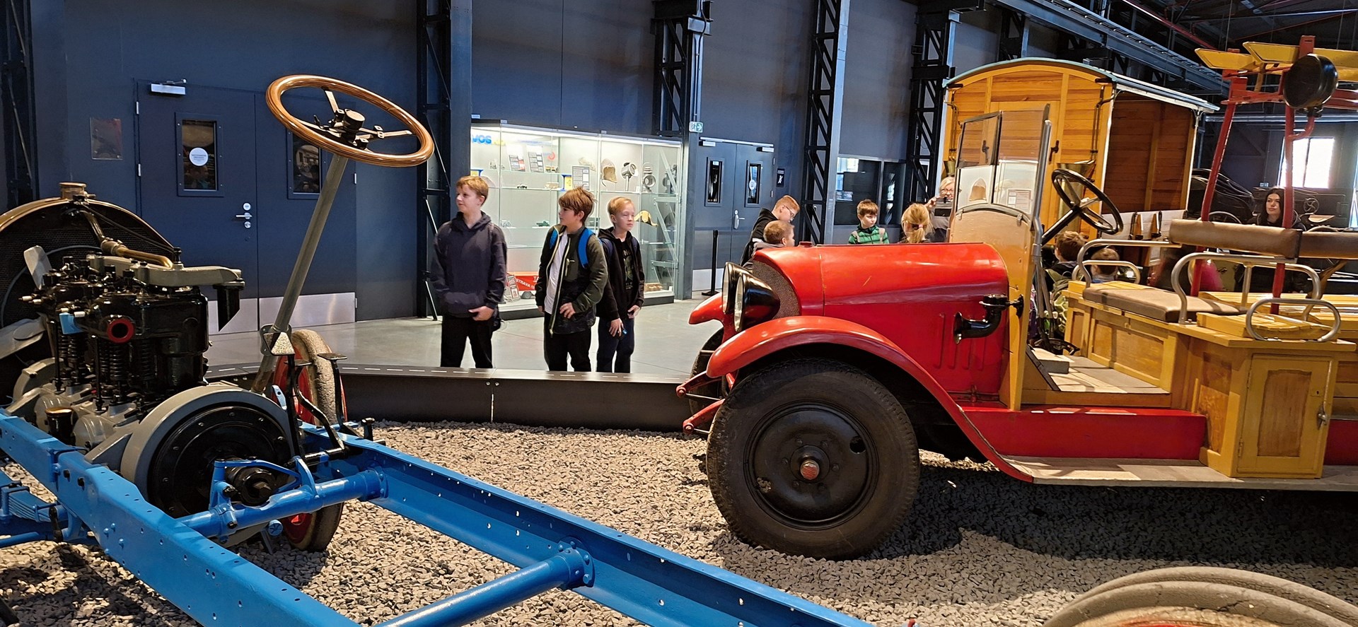 První zastávkou bylo Muzeum nákladních automobilů Tatra v Kopřivnici. A že tam bylo co objevovat! Děti si vyzkoušely, jak se dříve „nahazoval“ motor pomocí kliky, otiskly si na papír zmenšené vzorky pneumatik a s nadšením usedly za volant jednoho z legendárních tatrováckých vozů.