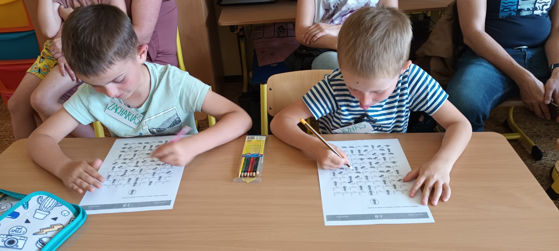 Jako každoročně i letos byl na naší škole Komenského 66 organizovaný minikurz pro budoucí prvňáčky. Letos přišlo 18 dětí a společně se svými rodiči a učitelkami prvních tříd se ve třech lekcích seznámily s tím, co by budoucí prvňáček měl umět. Děti trénovaly správné držení tužky, vybarvovaly podle předlohy, překreslovaly tvary, vyhledávaly zvířátka podle stínů. A hlavně jsme si všichni hodně povídali, zpívali a hráli hry. Rodiče se od učitelek dozvěděli, co vše je možné s dětmi do září trénovat, aby byl začátek první třídy pro jejich děti úspěšný. Celý kurz byl plný radostné atmosféry a pohody. Děti se už do školy těší. A my se těšíme na ně:-)