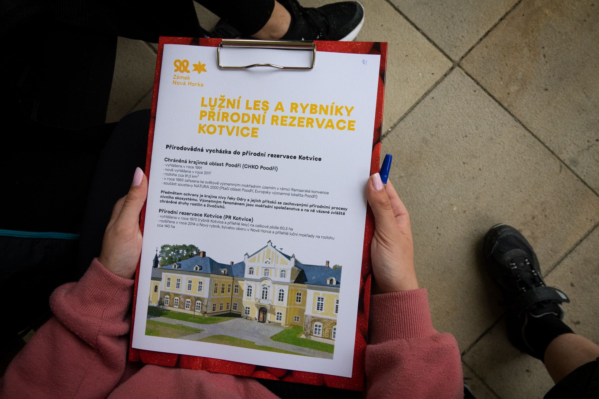 Na zámku v Nové Horce se nás ujaly pracovnice Muzea Novojičínska, odbornice na zoologii a botaniku, a mohli jsme se vydat na opravdové safari do přírodní rezervace Kotvice k Novému rybníku.