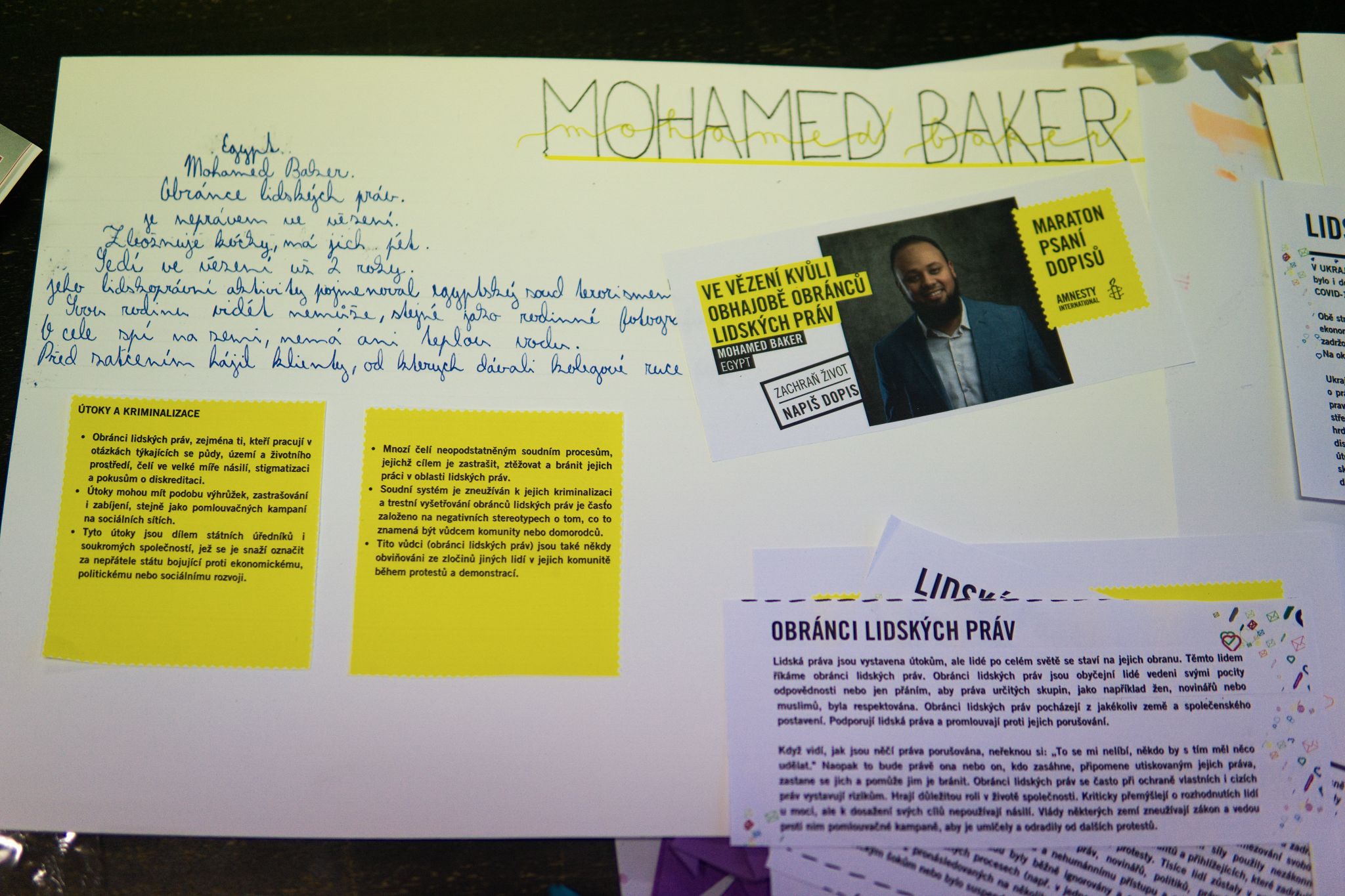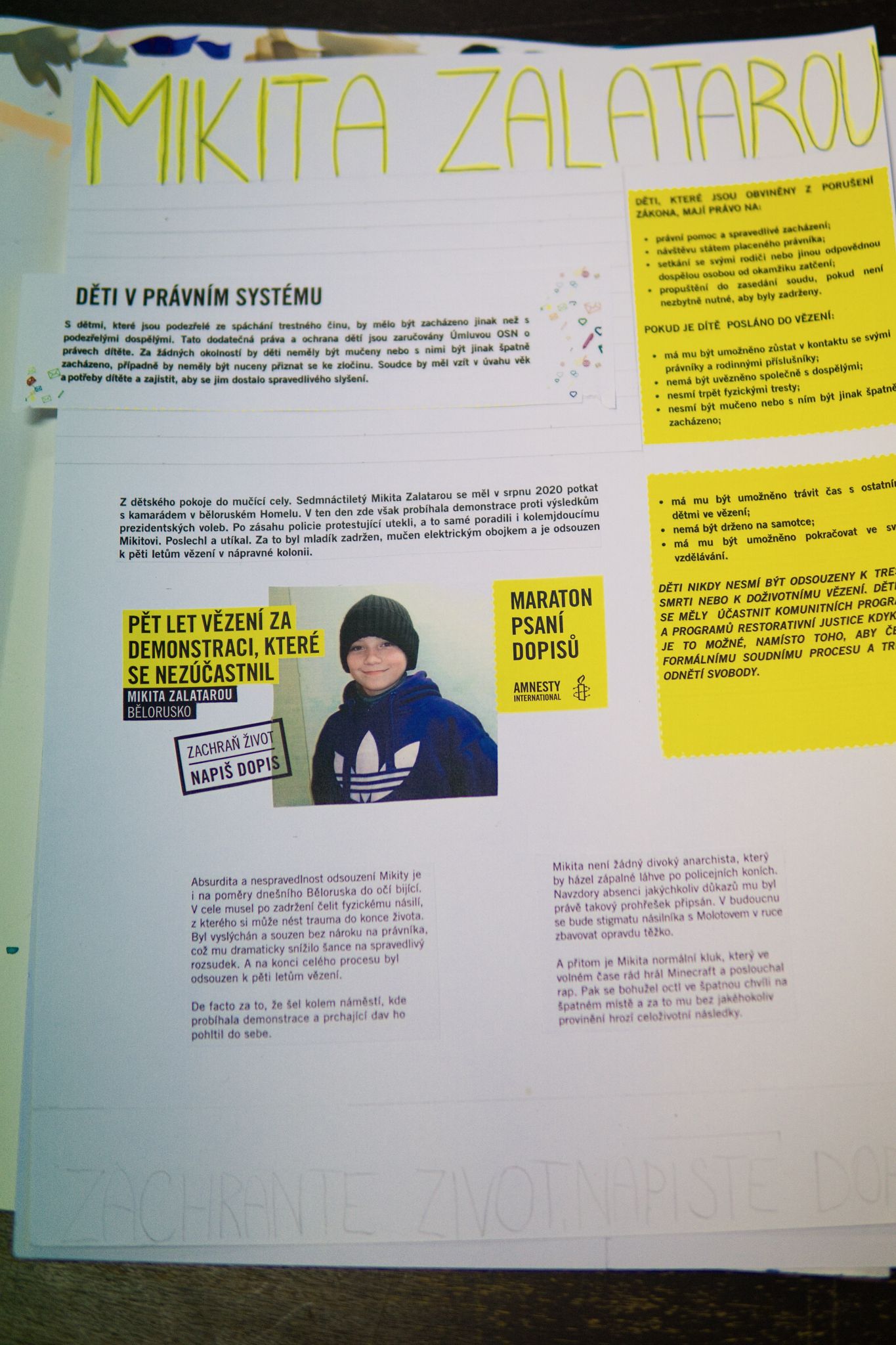 Osmáci psali prezidentům, konzulům a ministrům. V rámci Výchovy k občanství se děti zapojily do největší lidskoprávní akce na světě - Maratonu psaní dopisů. Lidé na celé planetě každý rok v prosinci posílají miliony ručně psaných dopisů s výzvami k osvobození konkrétních lidí, kteří se stali obětmi bezpráví. V jeden čas a v počtu, který vlády a úřady příslušných zemí nemohou ignorovat. Děti tak na vlastní kůži zažily, že na každém záleží a každý hlas se počítá. Společně se nám podařilo napsat třicet dopisů v angličtině a pevně doufáme, že se osudy všech nespravedlivě vězněných lidí podaří změnit.
