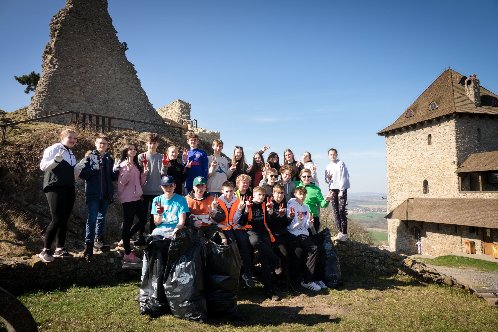K výzvě ukliďme Česko jsme se letos připojili poprvé. Ačkoliv jsme museli posunout termín kvůli počasí, ukázal se tento krok jako velmi prozíravý, neboť nás na Škaredou středu uvítalo mrazivé ale slunečné jitro. Po přesunu na Starý Jičín - návrh od dětí - jsme se vydali uklidit oblíbenou výletní destinaci - okolí hradu. Přesto, že jsme zdolávali opravdu náročný terén, povedlo se nám nasbírat čtyři velké pytle odpadu - vedly pet lahve , igelitové sáčky a plechovky od pití. Chlapci v oblasti pod hradbami našli i několik lešenářských trubek a statečně je odnesli dolů. Tam už se odpadu ujaly technické služby a byl odborně zlikvidován. Bylo určitě příjemné strávit krásné dopoledne v přírodě místo ve školních lavicích, pevně však doufám v další efekt této skvělé akce a to, že děti budou s odpady nakládat správně.