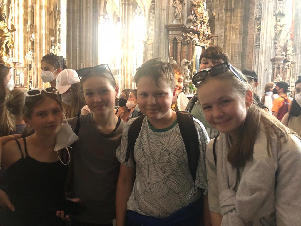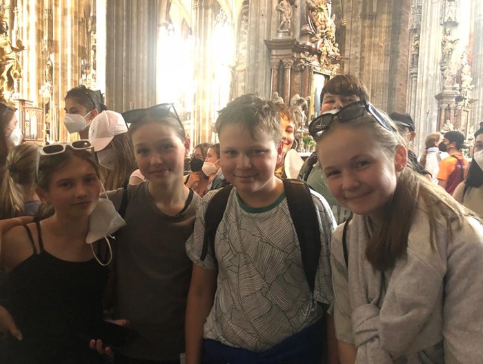Naše dopolední putování začalo u sochy císařovny Marie Terezie a nám tolik známého generála Laudona, která se nachází mezi přírodovědným a umělecko-historickým muzeem. Poté jsme prošli hradním komplexem a sídlem rakouského prezidenta, Hofburkem, směrem k dvorní c. a k. cukrárně Demel, která je dodnes proslulá výrobou pravých kandovaných fialek, které velmi chutnaly rakouské císařovně Sissi. My už teď po ochutnávce víme, že se fialky cumlají a nesmí se kousat, aby vynikla jejich voňavá a jemná chuť. Habsburská hrobka v kapucínském kostele byla dalším naším důležitým cílem, stejně tak i chrám sv. Štěpána se zvonem Pummerin v severní věži, střechou s proužkovaným motivem a keramickými taškami, které byly vyrobeny v Poštorné u Břeclavi.