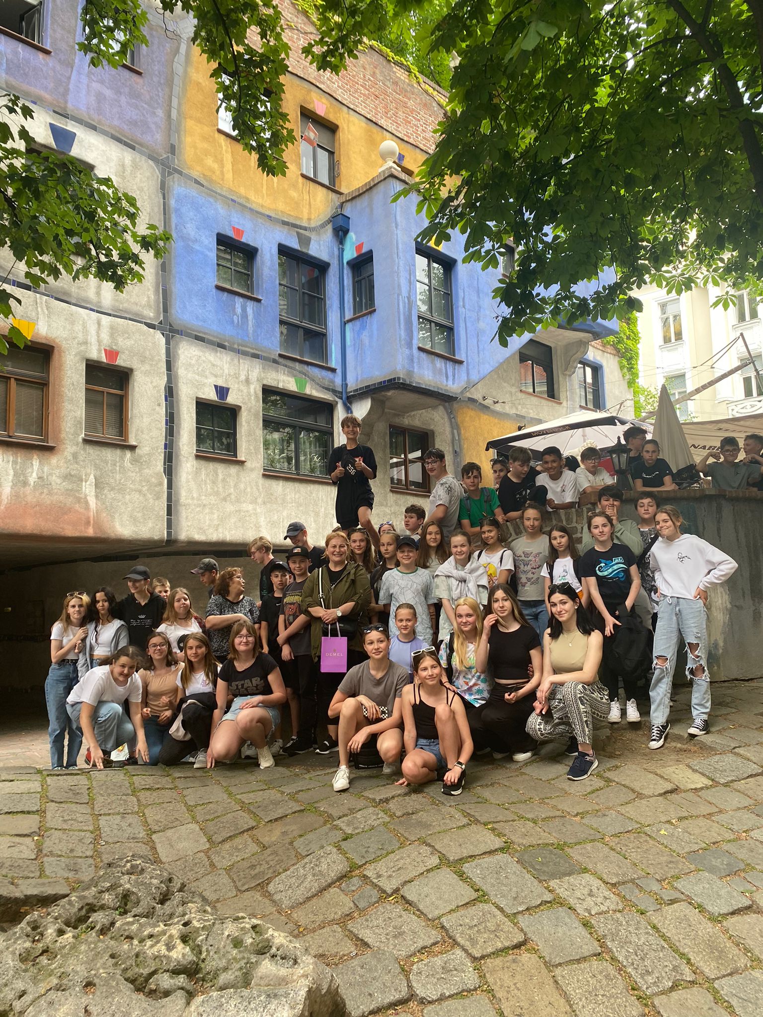 Růžová prodejna Manner, cukrárna Aida a fiakry s bílými lipicány u dómu se staly příjemným zpestřením poledního volna. V odpoledních hodinách jsme navštívili Hundertwasserhaus, barevnou avantgardní stavbu se zdmi bez jediného pravého úhlu od známého a velmi oblíbeného rakouského architekta Friedricha Hundertwassera, a zábavní park pro děti i dospělé Prátr. Každý z nás si zde pochutnal na pravé vídeňské pečené klobáse se sýrem s názvem Käsekrainer od firmy Bitzinger, která má ve Vídni jen dva stánky, a to u Albertiny a v Prátru. Jízda na nejvyšším řetízkovém kolotoči v Evropě ve výšce 117 m s panoramatickým výhledem na město byla pomyslnou tečkou za tímto báječně stráveným dnem.