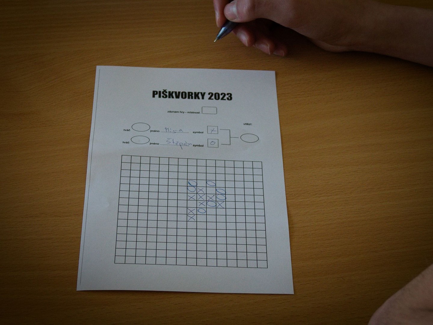 V pátek 10. 2. 2023 pořádala naše škola první ročník piškvorkového turnaje. Organizace této soutěže určené pro žáky druhého stupně se ujala 9.C. Poslední vyučovací hodinu před jarními prázdninami byla padesátka přihlášených soutěžících rozdělena do čtyř učeben, ve kterých souběžně probíhaly duely nadšenců křížků a koleček. Z každé učebny pak postoupil jeden hráč do závěrečného kola, kde se soustředěně bojovalo nejen o radost z vydařené hry, ale i o hodnotné ceny, které věnovalo město Nový Jičín, společnost AMENIT s.r.o. a PENAM a.s.