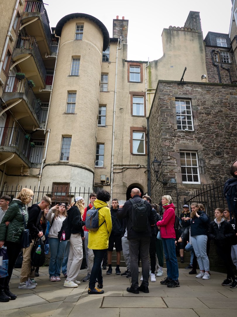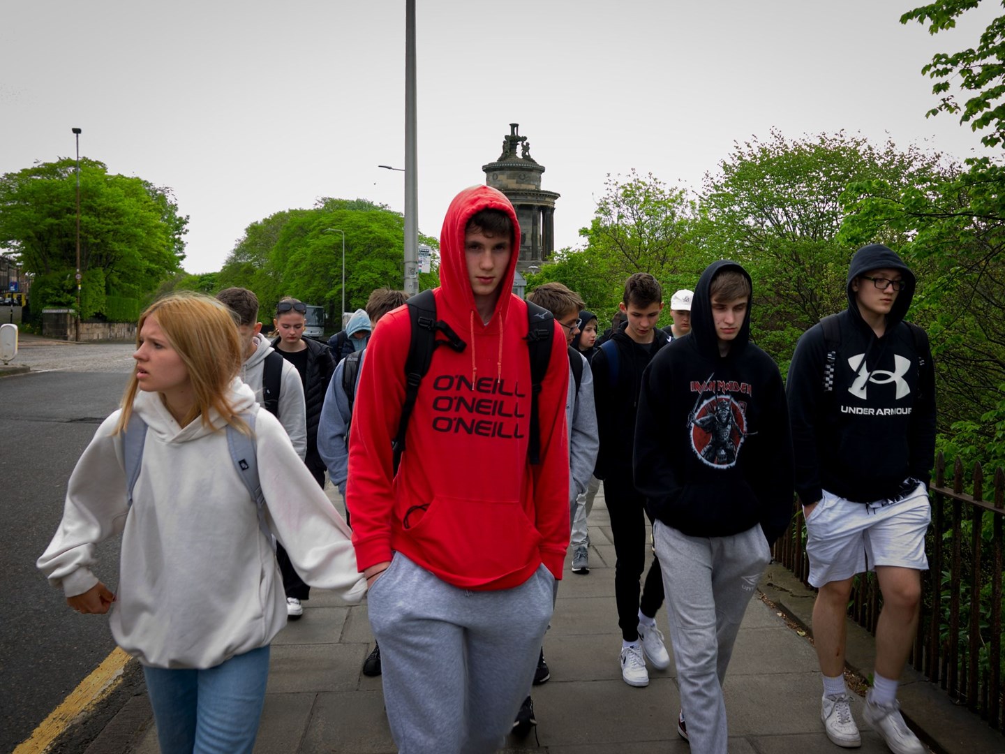 Po nočním přejezdu autobusem do Skotska jsme vyšplhali na Calton Hill. Edinburgh jsme měli jako na dlani. Cestou na Edinburgh Castle jsme nakoukli i do areálu místní univerzity. Večer nás pak přivítaly naše adoptivní rodiny ve svých domovech. Po noci strávené v autobuse jsme spánek v posteli opravdu uvítali.