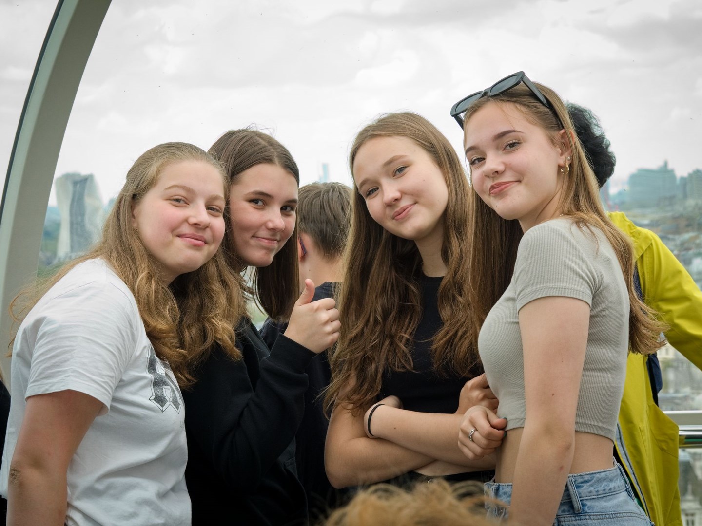 V polovině května vyrazily v brzkých ranních hodinách dva autobusy natěšených cestovatelů z naší školy vstříc dobrodružství na Britských ostrovech. První zastavení bylo tradičně v londýnském Greenwich, odkud nás loď dopravila po řece Temži do centra města. Po cestě jsme si prohlédli všechny známé pamětihodnosti (Tower, Tower Bridge či Shard) a jízdu jsme zakončili u Westminsteru, kde už nás čekalo London Eye. Po úchvatných třiceti minutách ve výšce 135 metrů jsme pokračovali pěší prohlídkou Londýna na Trafalgar Square, k Buckingham Palace a British Museum. Den jsme zakončili nákupy na Oxford Street.