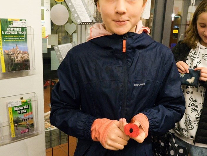 V pátek 3.11.23 se 6.A pokusila získat první skautskou známku v městské hře Ve službách republiky. V omezeném čase se pět týmů vyzbrojených mobily vydalo plnit obtížné úkoly do centra města. Čekaly na nás záludné otázky jako rok narození T.G. Masaryka, rozeznávání cizích jazyků, luštění šifry, ale i prověření naší kondice či básnické zdatnosti. Ve stanoveném čase se nakonec čtyřem týmům podařilo známku získat. V informačním centru si zájemci, kromě vyzvednutí známky, mohli zakoupit i květ červeného máku - symbol sbírky Mezinárodního dne veteránů. Za zábavnou a poučnou hru děkujeme novojičínským skautům!