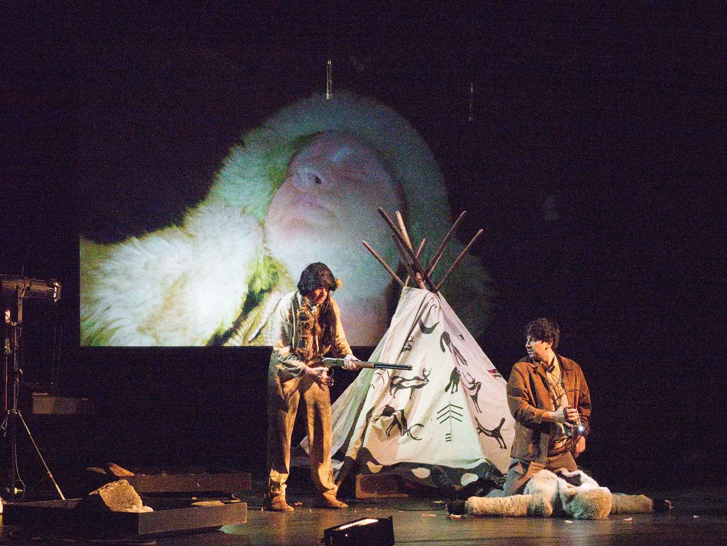 Naturalismus a syrovost boje o přežití Bílého tesáka v nelítostných podmínkách arktické přírody byly umocněny alternativní jevištní technikou zvanou live cinema. Ta propojuje divadlo a film pomocí snímání dění na jevišti kamerou. Divák tak daleko intenzivněji vnímá performanci, neboť se mu díky přenosu na plátno skýtá pohled z mnoha perspektiv.
