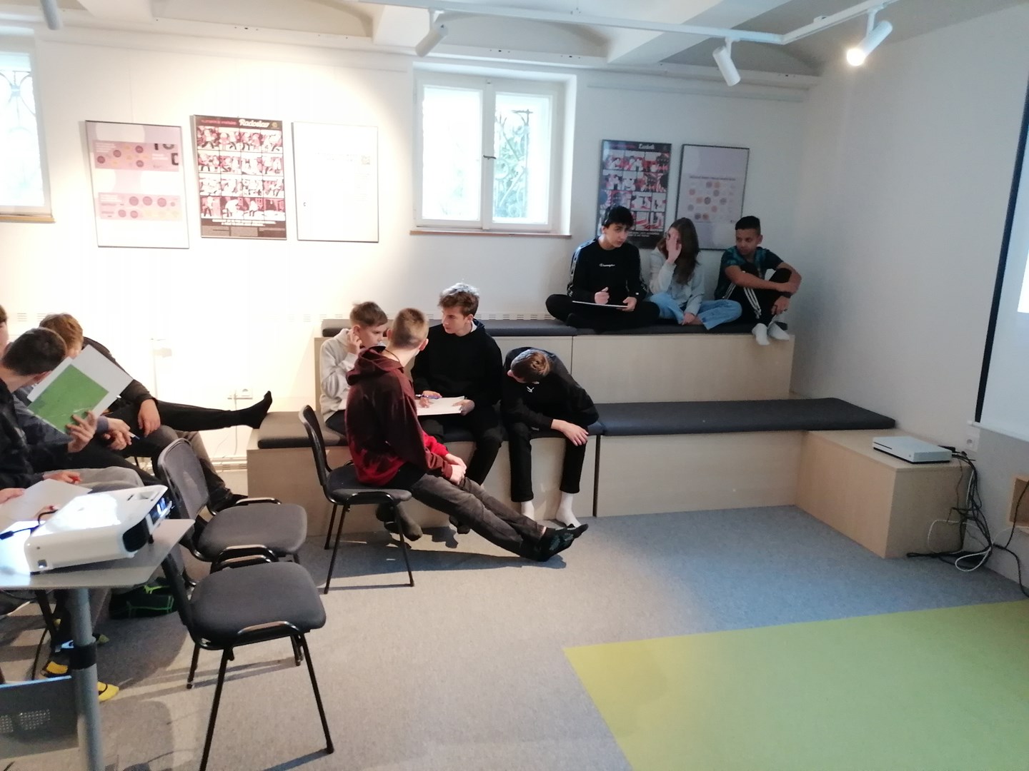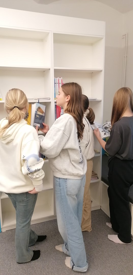 Po přednášce zbyl čas na prohlídku a listování knihami, jež nabízí svým čtenářům T-klub, a také na jedno zábavné kulturní překvapení pana knihovníka. Všichni jsme se shodli, že tento čas strávený v knihovně byl smysluplným a významně obohatil naše znalosti z učiva dramatu, které nyní rezonuje v našich hodinách literatury.
