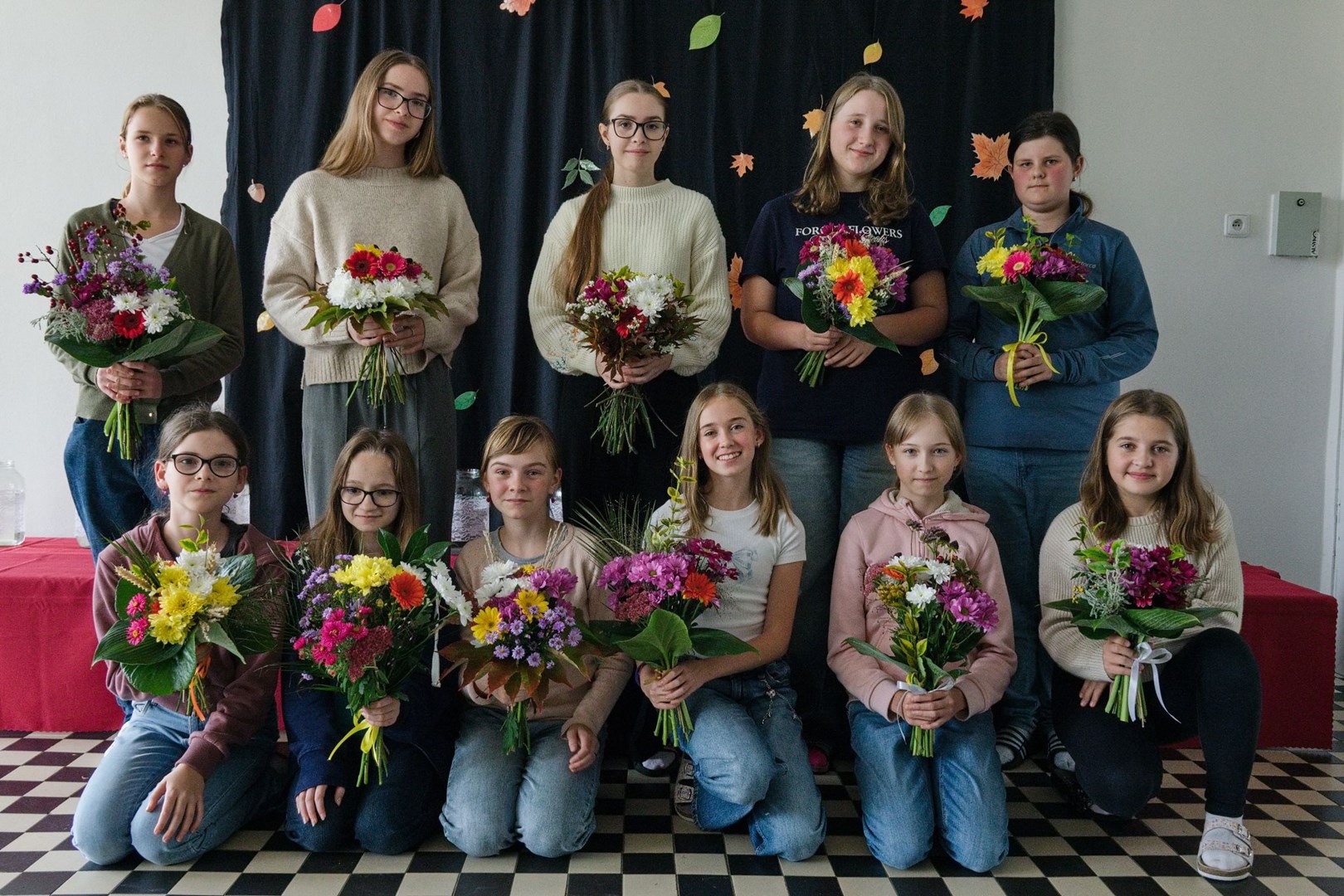 V pondělí 6. října 2025 proběhlo na naší škole školní kolo Floristické soutěže pro žáky 2. stupně. Tématem byla „Podzimní inspirace“, která se promítla do soutěžních aranžmá z květin, listů a přírodních materiálů. Úkolem bylo vytvořit květinovou vazbu na stůl a vázanou kytici podle vlastního návrhu.