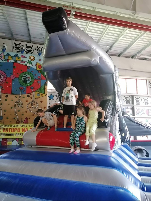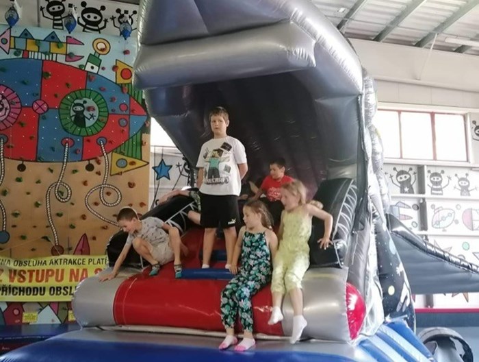 Cesta autobusem ubíhala rychle a zanedlouho vstoupili malí mimozemšťané do velké Galaxie. A že bylo z čeho vybírat. Raketoplán, trampolíny, skákací hrad i veliké bludiště s mnoha překážkami, to všechno jsme stihli během odpoledne vyzkoušet. K jednotlivým atrakcím se navíc mimozemšťané přesouvali na koloběžkách a trojkolkách.