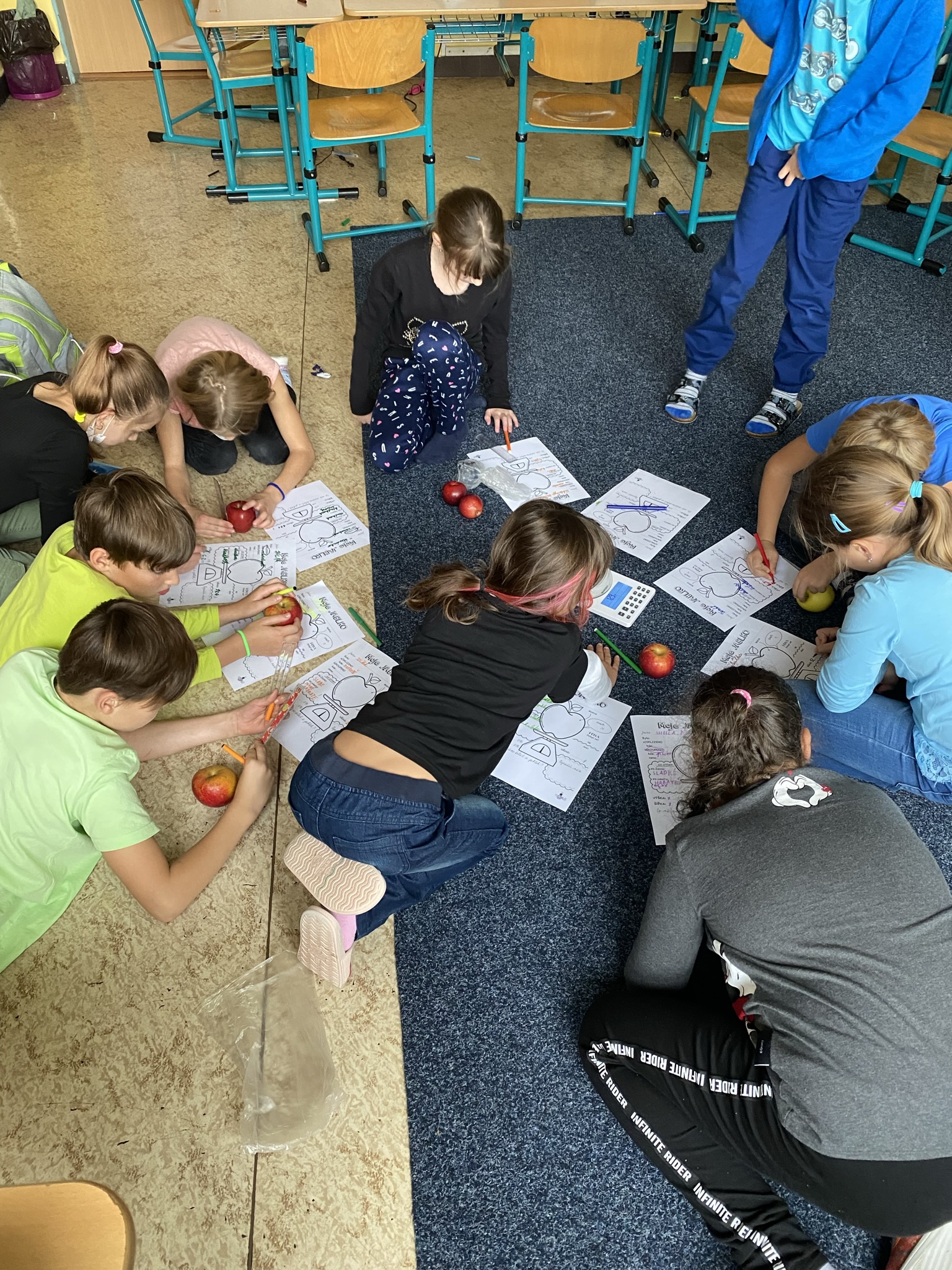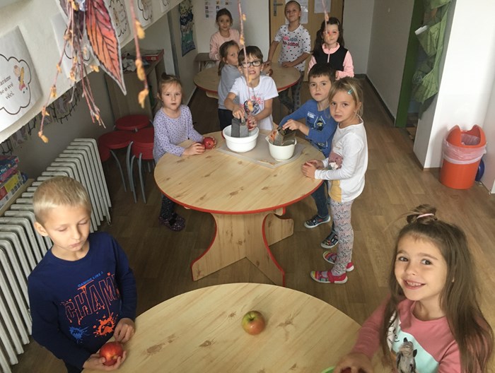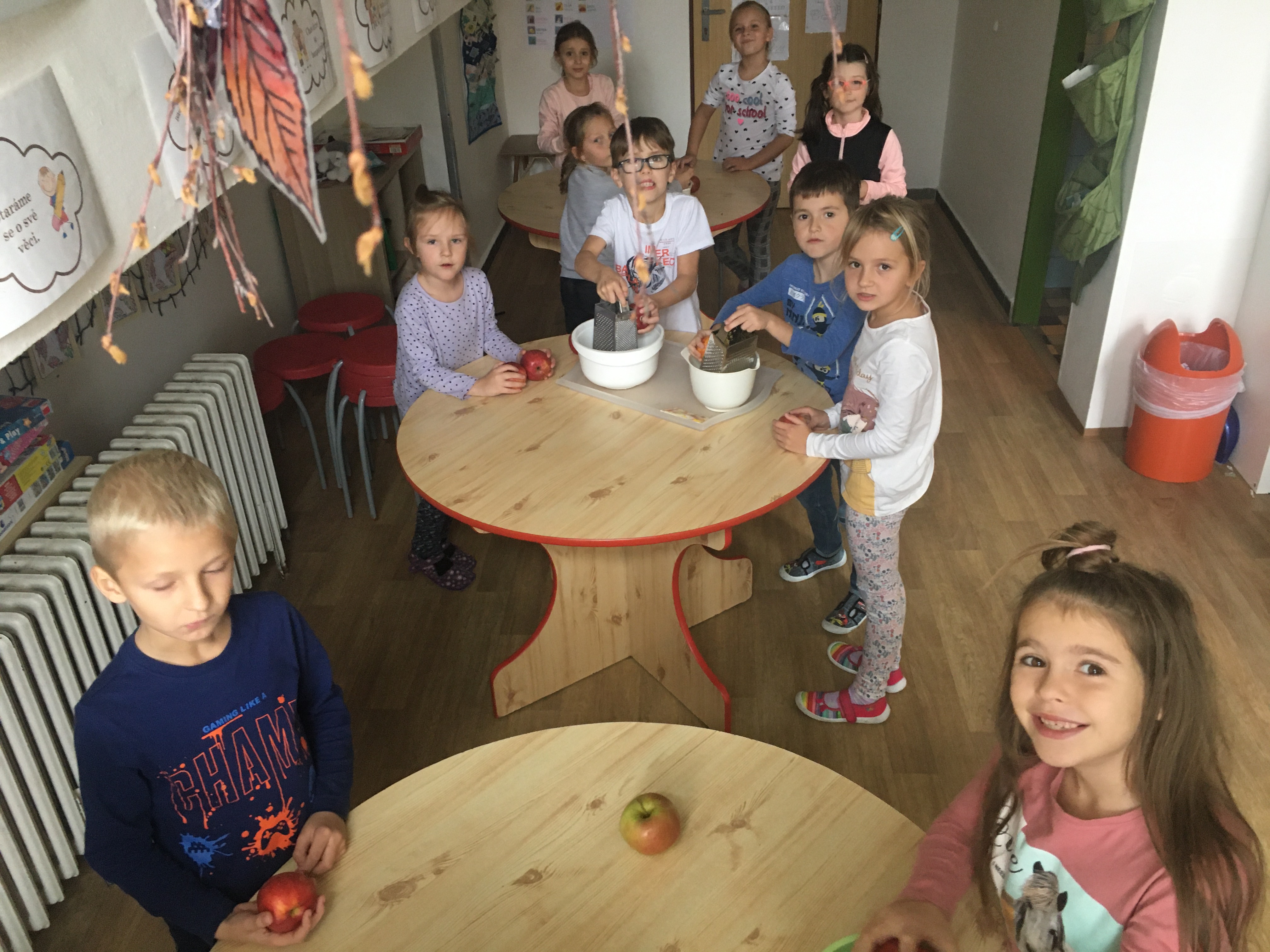 V průběhu října jsme se ve všech družinkách zabývali tématem JABLÍČKOHRANÍ. Jablíčka jsme měli okolo sebe ve všech podobách. Malovali jsme ho, hráli jsme s ním různé hry, kuchtili z něj a dokonce jsme ho zkoumali. Na závěr bylo vyvrcholení v podobě soutěží, které si děti náramně užily.