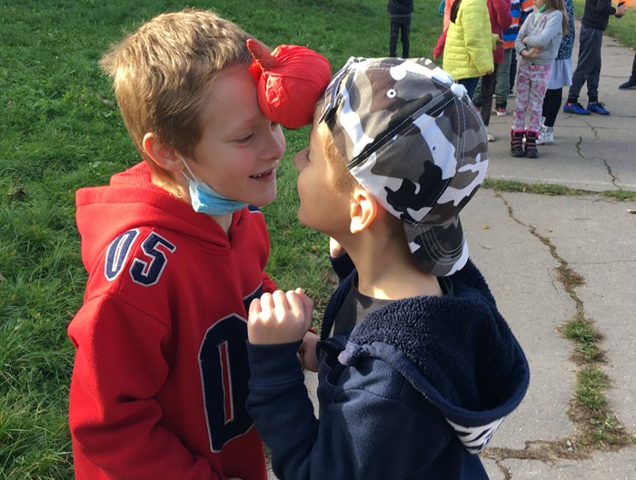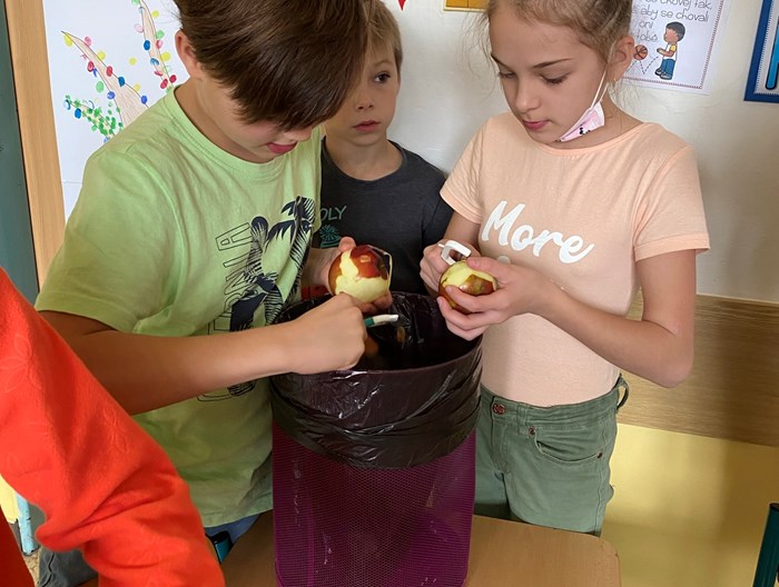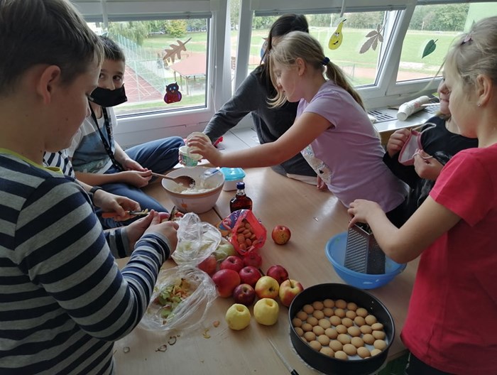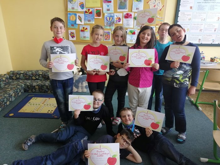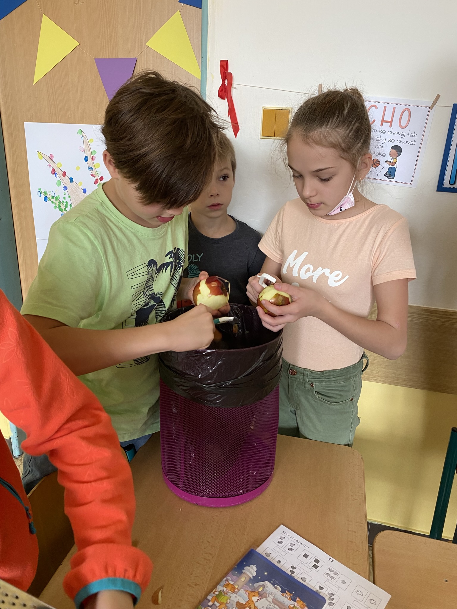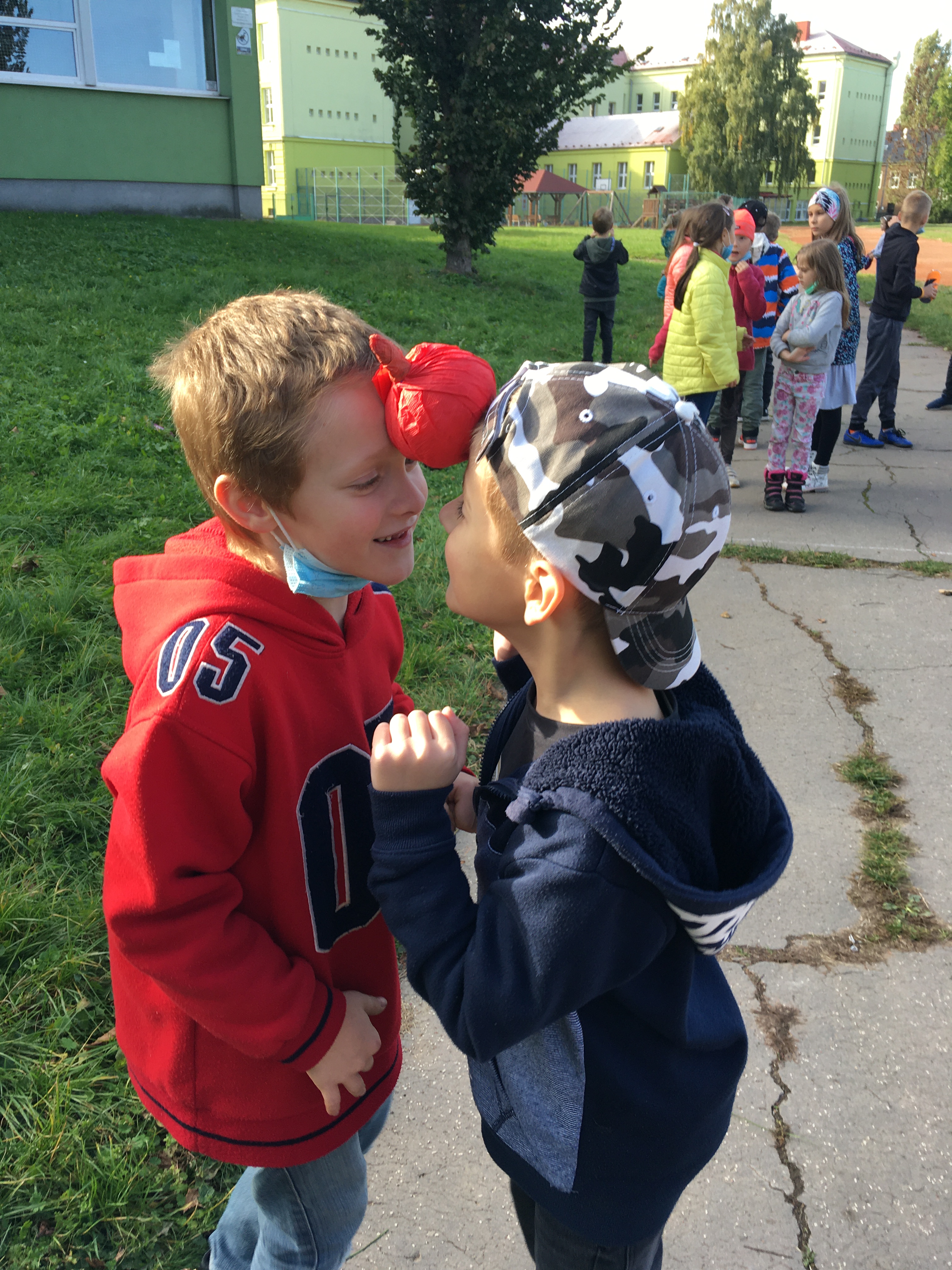 V průběhu října jsme se ve všech družinkách zabývali tématem JABLÍČKOHRANÍ. Jablíčka jsme měli okolo sebe ve všech podobách. Malovali jsme ho, hráli jsme s ním různé hry, kuchtili z něj a dokonce jsme ho zkoumali. Na závěr bylo vyvrcholení v podobě soutěží, které si děti náramně užily.