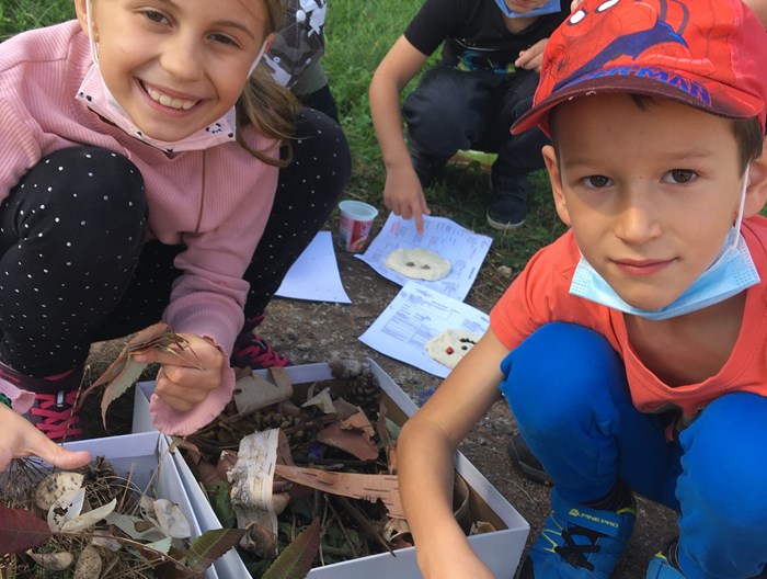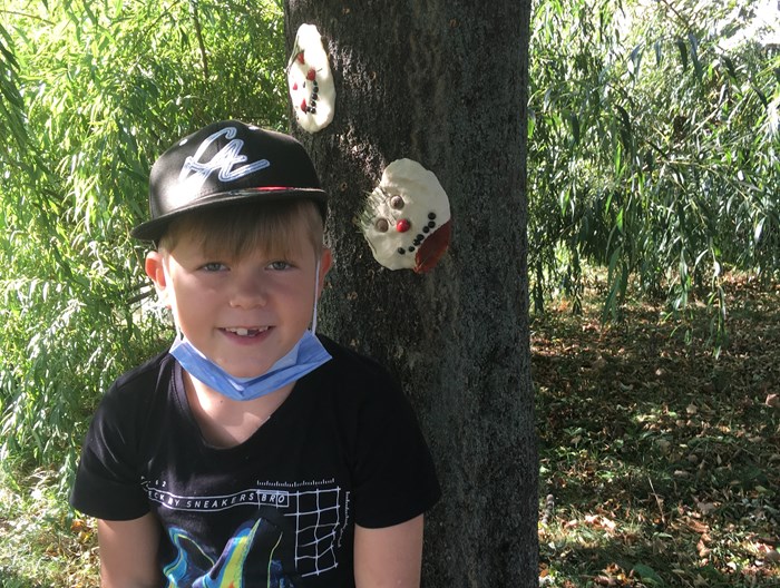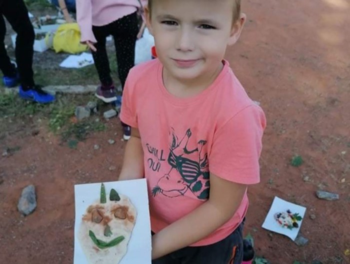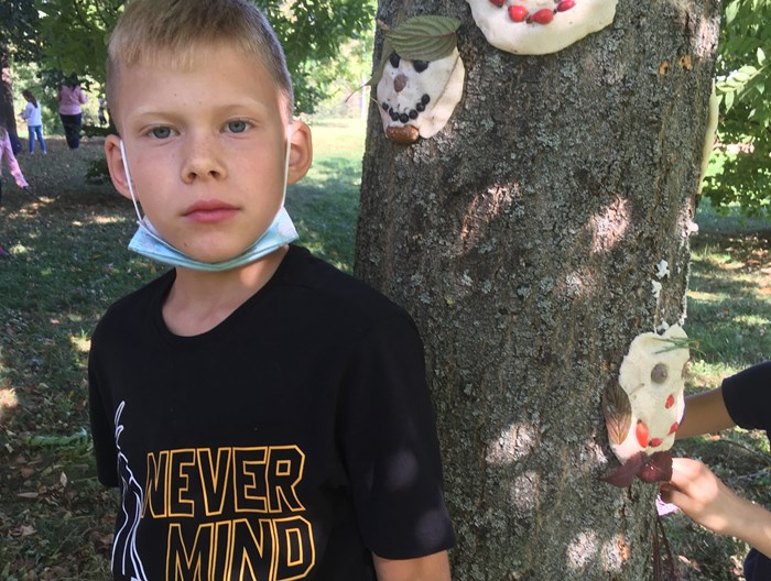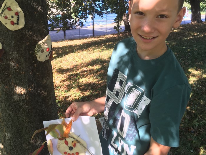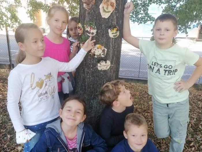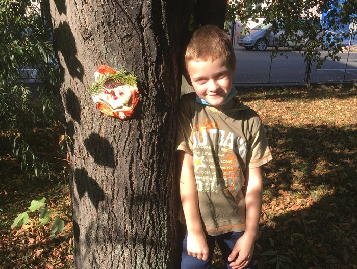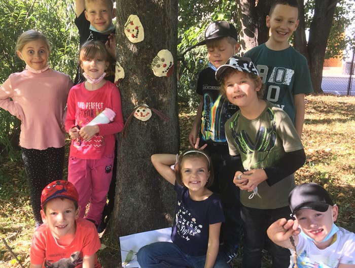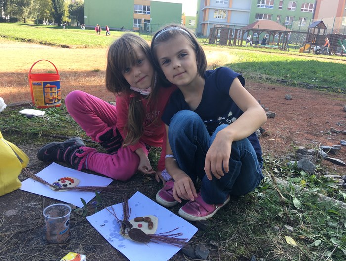 V říjnu jsme společně s žáky 3. a 4. oddělení vyráběli podzimní obličeje. Využili jsme hezkého počasí a tvořili v areálu školního hřiště. Nejprve si děti ze slaného těsta vymodelovaly obličej a pak jej nazdobily přírodninami, které podzimní příroda nabízí (šípky, šišky, listy, jehličí apod). Hotové obličeje jsme pomocí vody nalepili na okolní stromy. Tvoření bylo pro děti zábavou a předvedly velkou kreativitu.