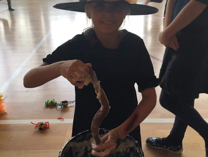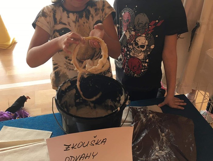 Letošní "HALLOWEENSKÉ" soutěžení 3. a 4.oddělení proběhlo na konci října. Děti plnily soutěže v různorodých kostýmech a maskách. Čekal je třeba průlet na koštěti, přechod po tajuplném mostě, slalom s pavoukem a další soutěže a zkoušky. Nejoblíbenější zkouškou bylo lovení příšerek a potvůrek ve slizu. Chtělo to opravdu velkou odvahu...