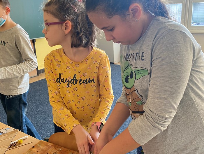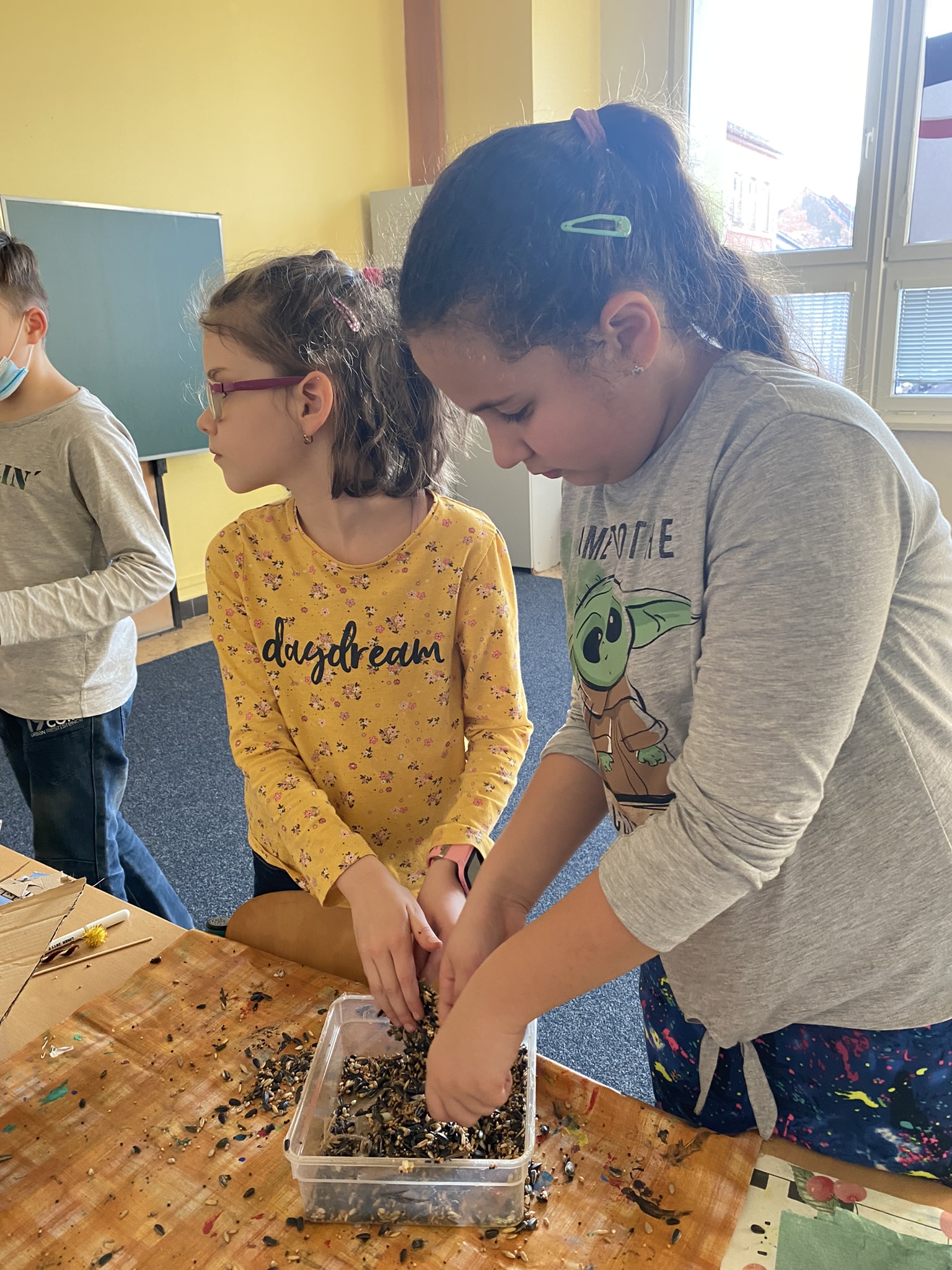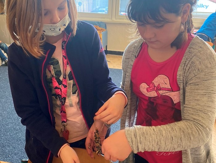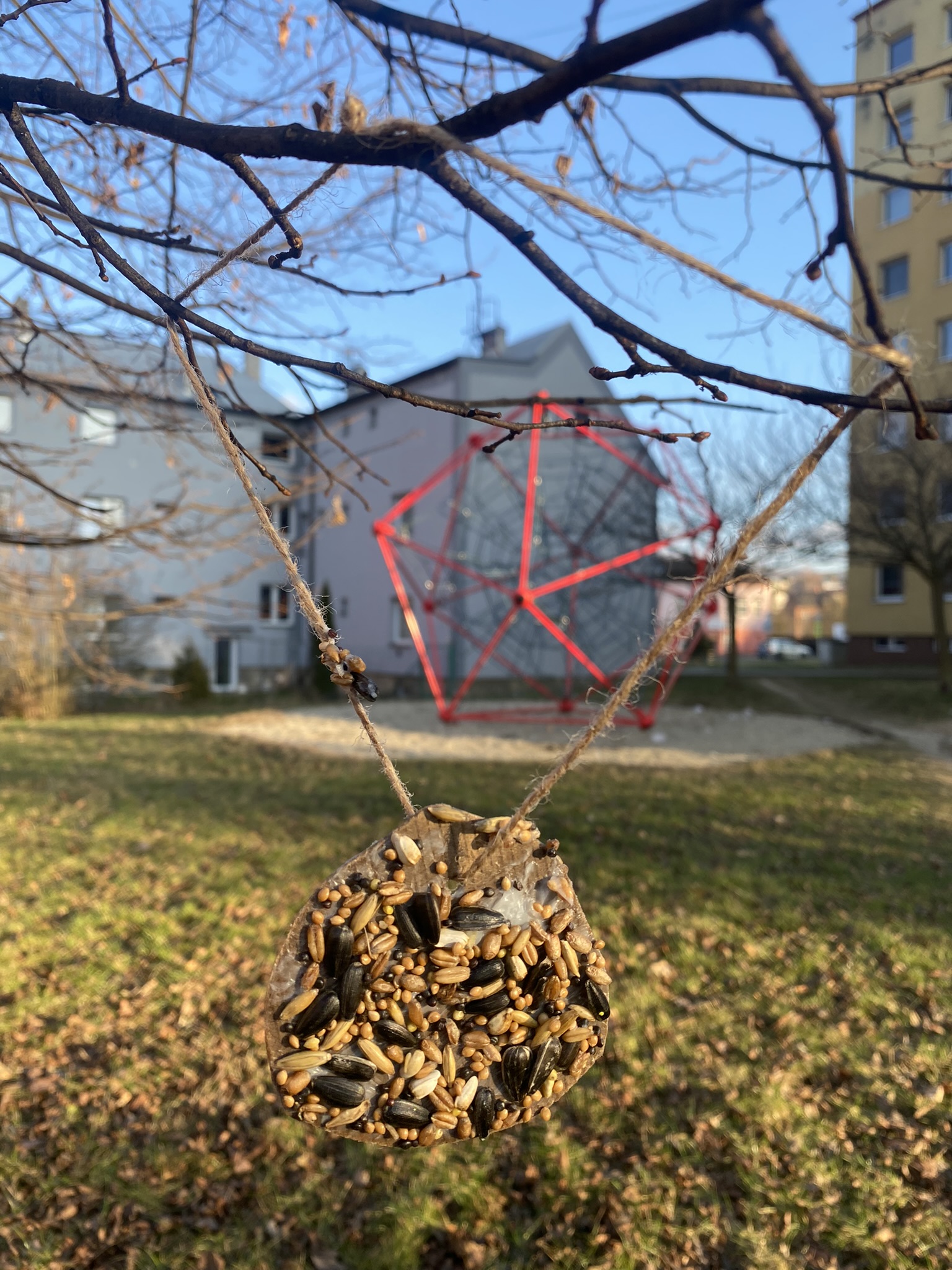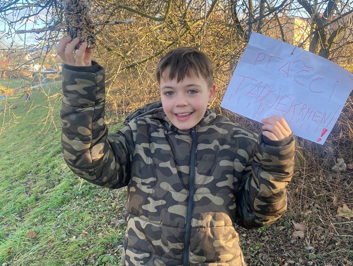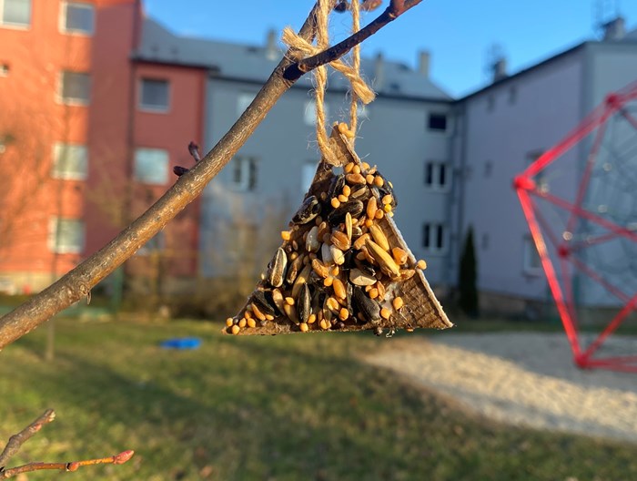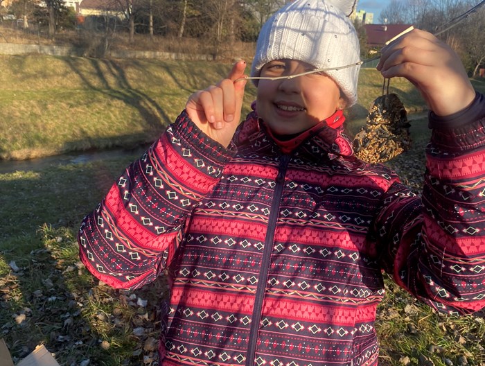 V pátek 14. ledna jsme v V. oddělení vyráběli svačinky pro ptáčky, které jsme posléze zavěsili v okolí školy. Na výrobu svačinky jsme potřebovali jen ekologické věci, a to karton z nepoužité krabice, sádlo, jutový provázek a zrní se semínky pro ptáky. Žáci si vyrobili tvar z kartonu podle jejich volby, přidělali provázek, namastili karton sádlem a obalili ho v semínkách. Později jsme šli zavěsit tyto výrobky do okolí školy. Věříme, že tato malá svačinka udělala ptáčkům radost a dodá jim energii do zbytku zimy.
