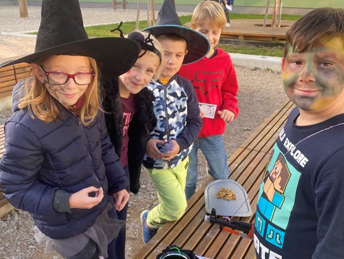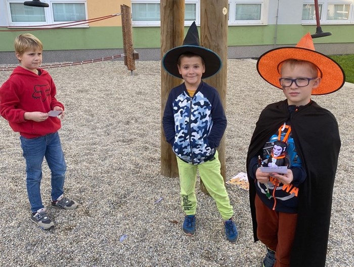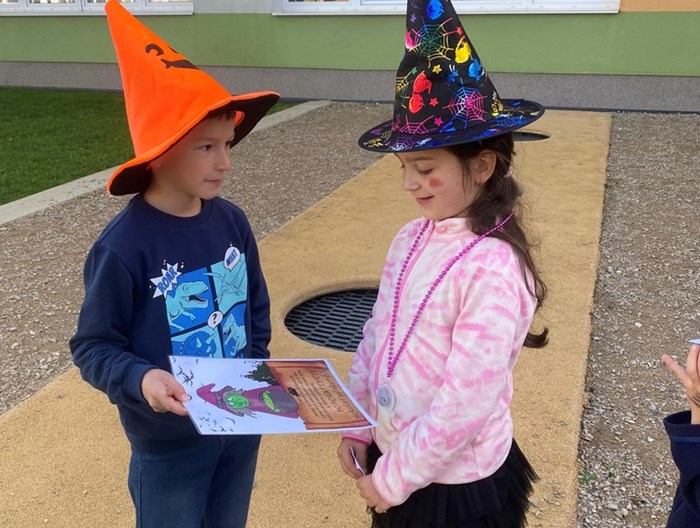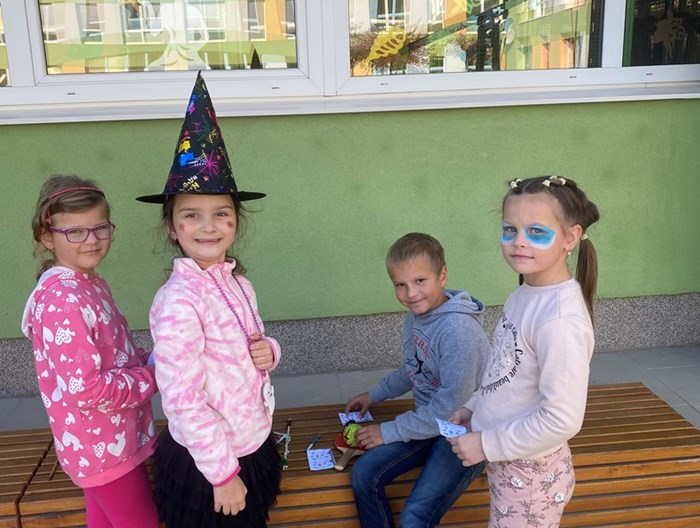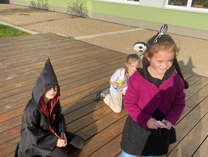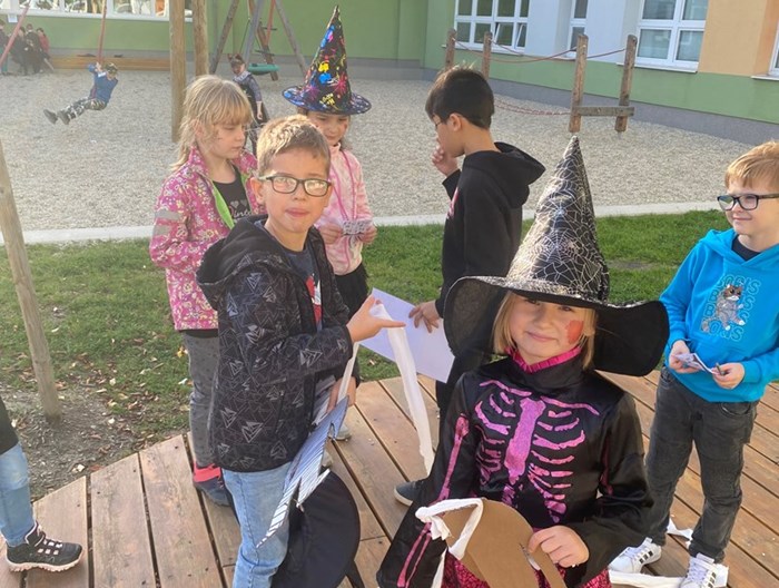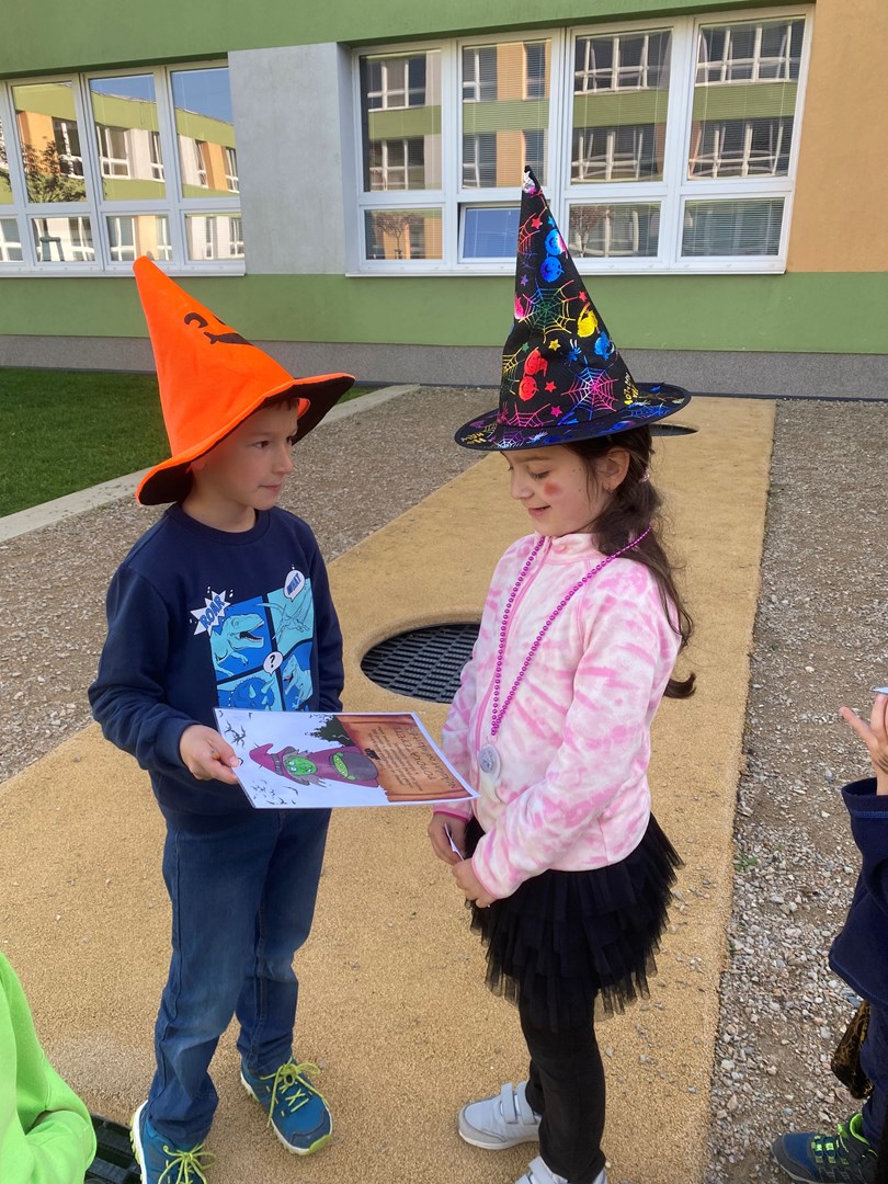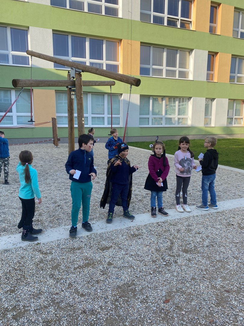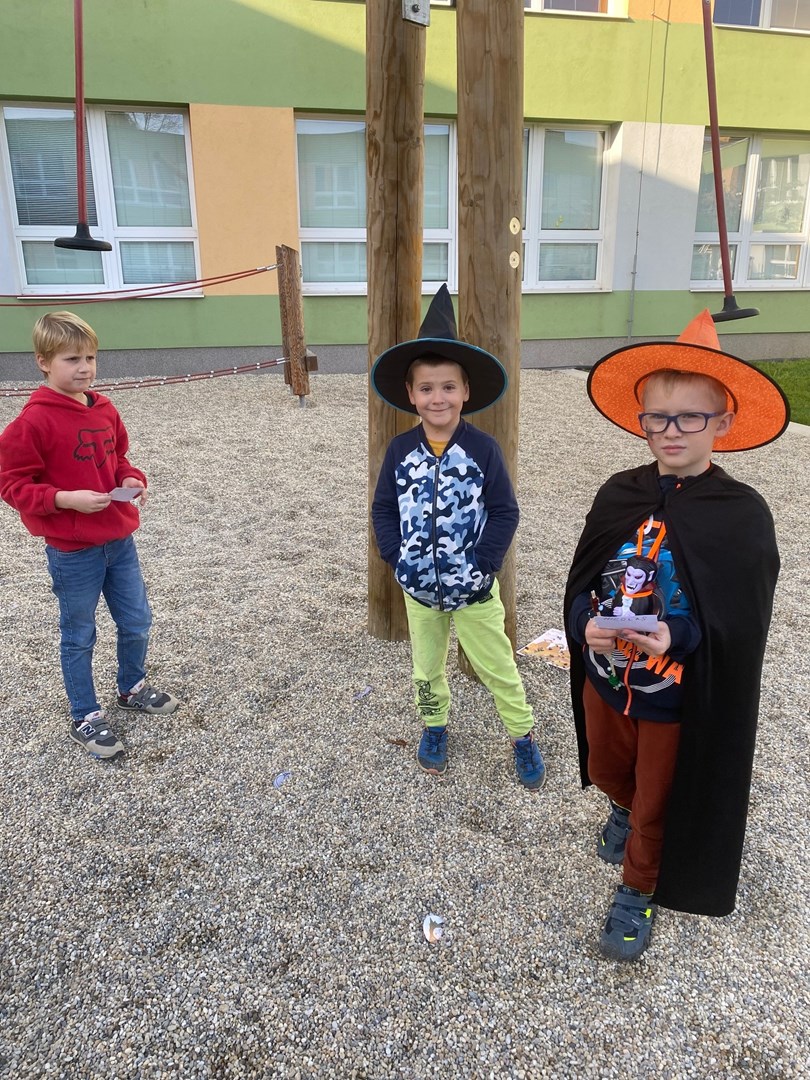 Poslední říjnový den se prvňáčci a žáci 3.B proměnili v čaroděje, duchy, pavouky a strašidla. Pro nadpřirozené bytosti bylo připraveno několik stanovišť, kde plnily všemožné úkoly. U vlkodlaka Vény se učily výt na měsíc, zombíkovi Pepovi hledaly ztracené oko, prolezly pavučinou od pavouka Ferdy a kostlivci Jeronýmovi poskládaly bratra Jaromíra.