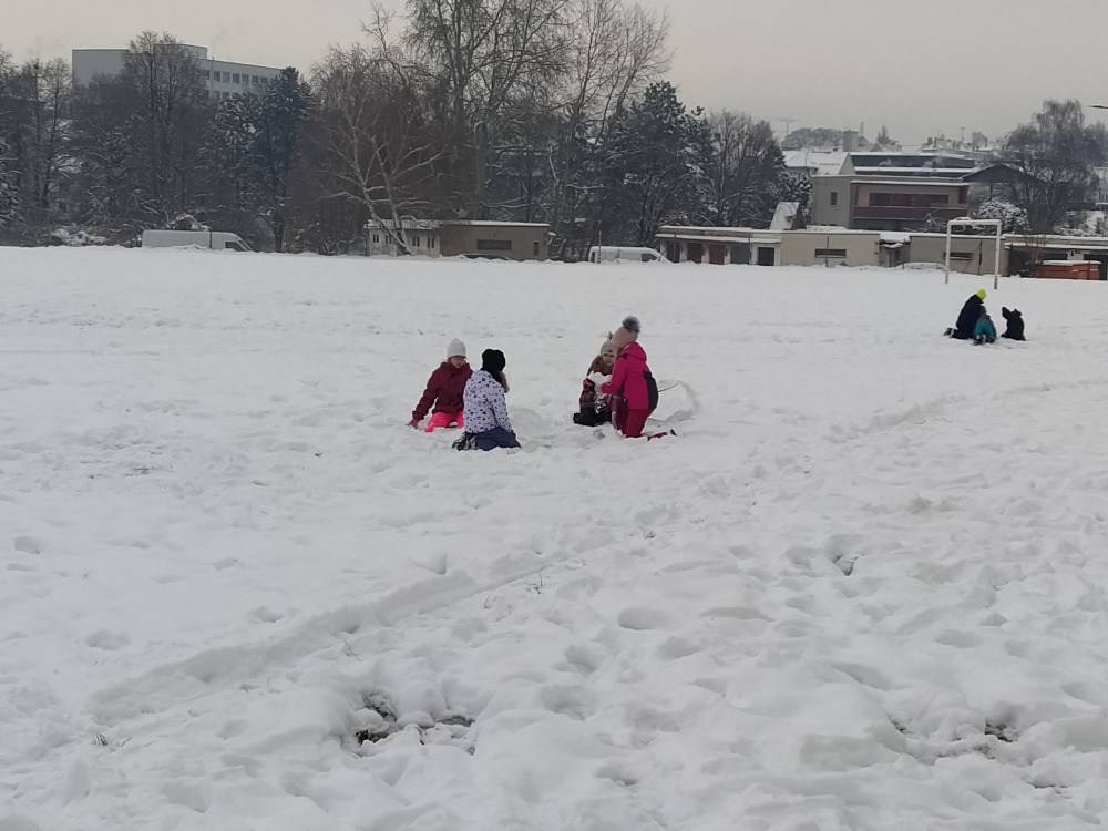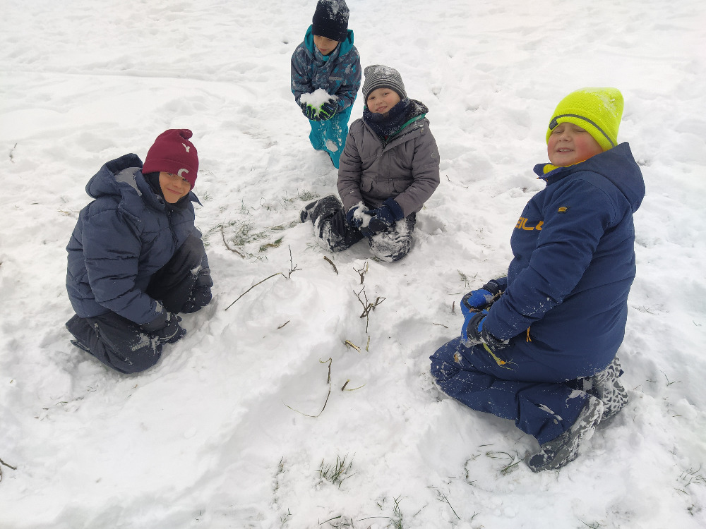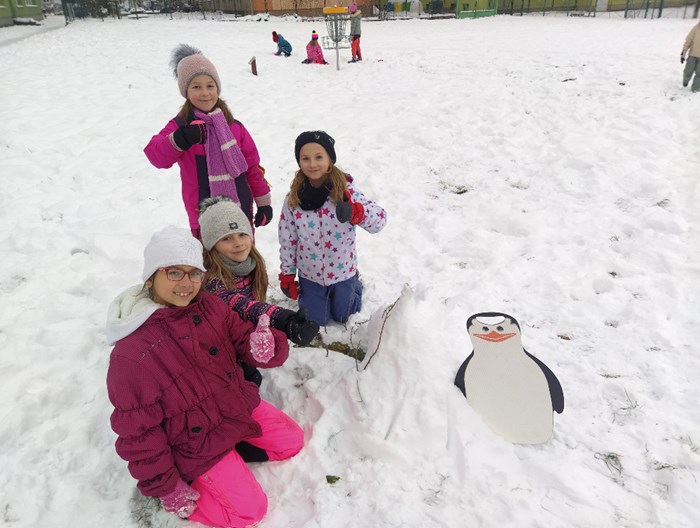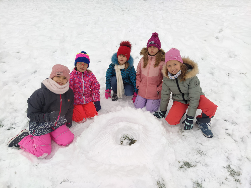 Konečně napadl sníh a bylo by škoda, kdybychom takovou předvánoční sněhovou nadílku nevyužili. Proto si žáci 3. A užili tělocvik a výtvarku na sněhu. Sníh byl pro děti tak přitažlivý, že jsme vyběhli ven a bez zastavení se pustili do práce. Každá skupinka si vytvořila nápaditý výtvor – bobovou dráhu, stadion, iglú …. jeden krásnější než druhý. Ani zima nás od práce neodradila, ba naopak, vykouzlila úsměv na červených tvářičkách všech dětí. Odměnou nám byl výborný oběd ve školní jídelně.