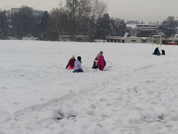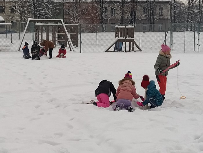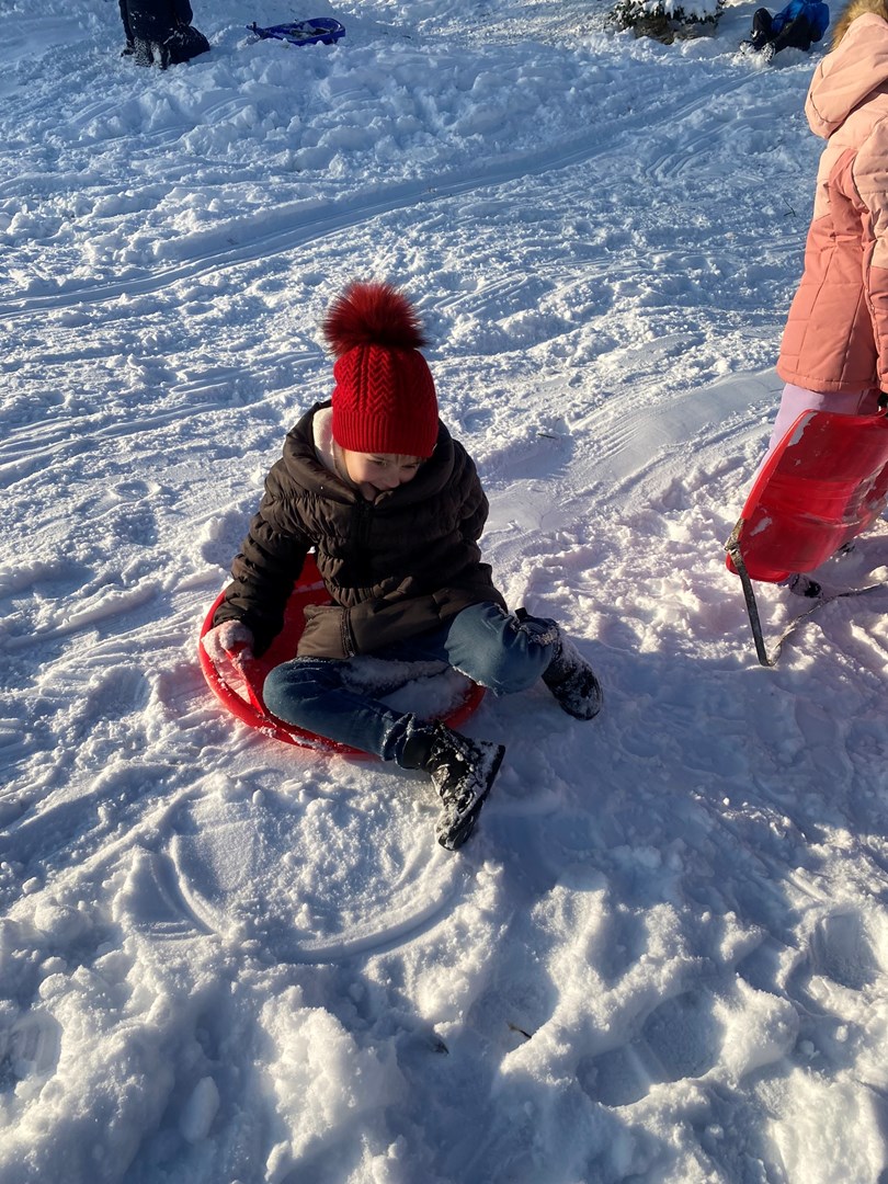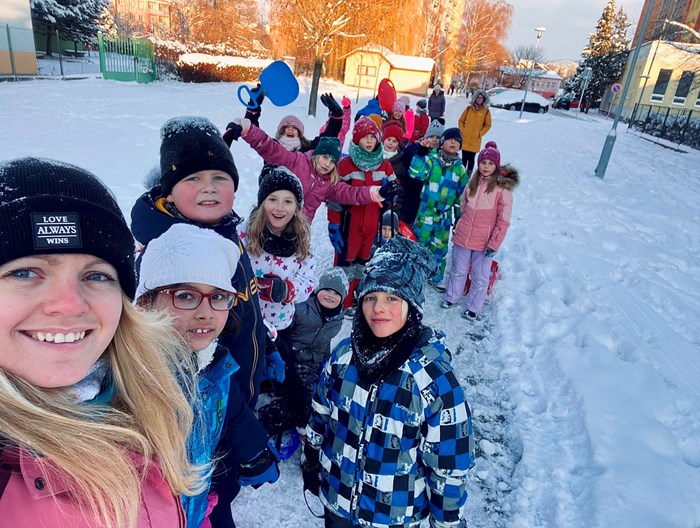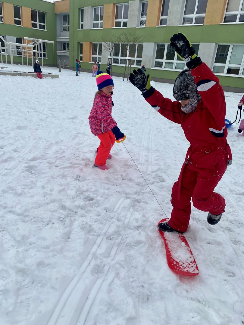 Sníh a skutečná zima jsou tady! Děti z pátého oddělení školní družiny toho ihned využily a vydaly se na nedaleký kopec bobovat. Sjezd na bobech pobavil nejen děti, ale také paní vychovatelku.Sníh jsme si užili i v našem atriu. Všichni máme hned lepší náladu a nadílka sněhu je pro nás krásné zpestření při čekání na Vánoce.