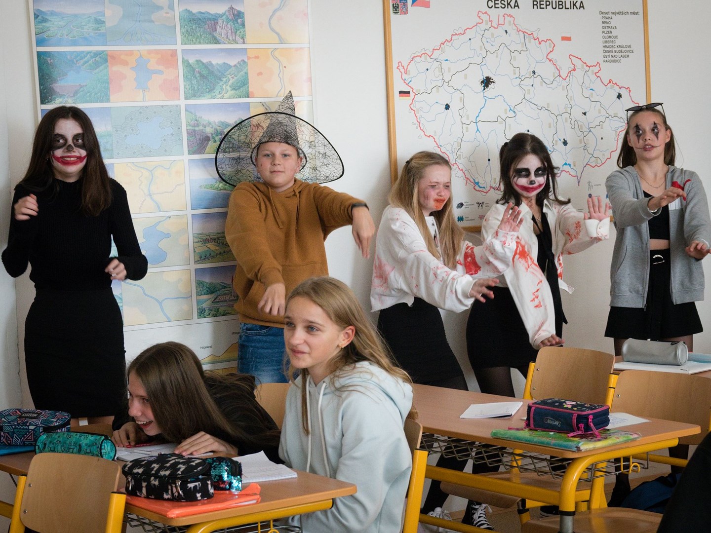 V pondělí 31.10.22 jsme na Komendě oslavili Halloween. V hodinách angličtiny děti plánovaly halloweenský večírek, naučily se rozlišovat fakta a názory nebo si vyzkoušely opravdovou koledu. Nechyběly samozřejmě kostýmy. Na chodbách jste mohli potkat hned šest čarodějnic z řad pedagogického sboru, mezi dětmi pak upíry, superhrdiny, zombie a příšery. Celý den jsme si moc užili!