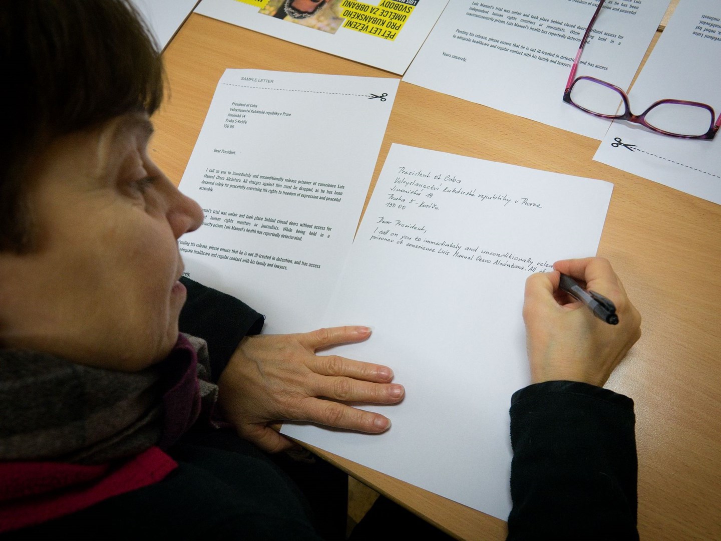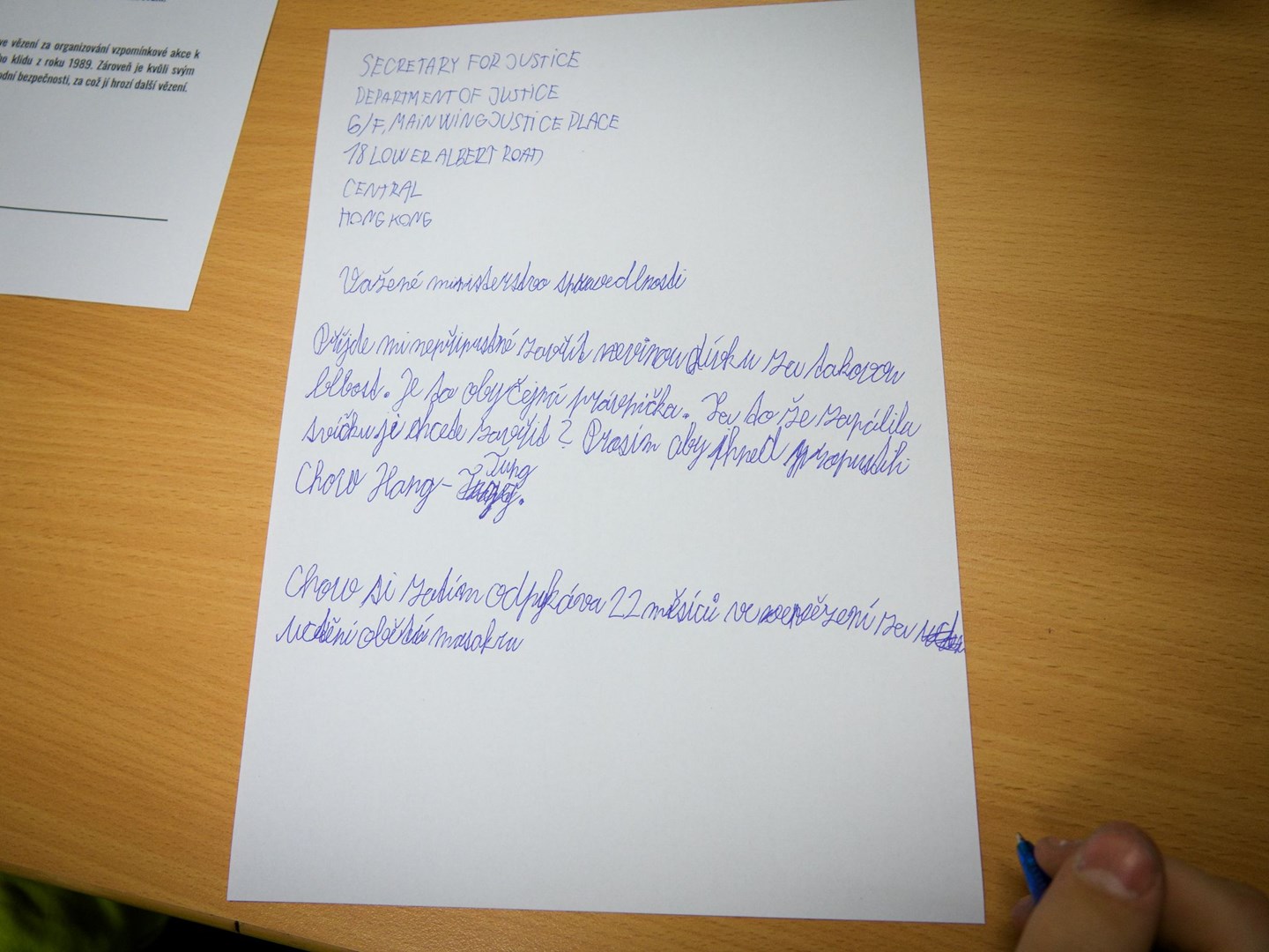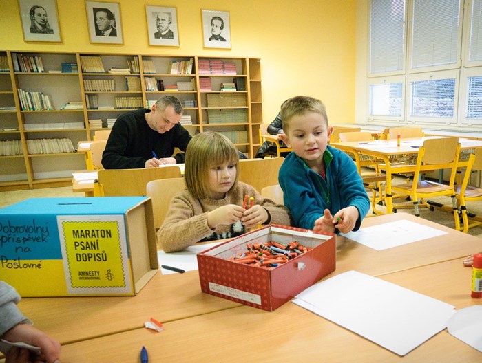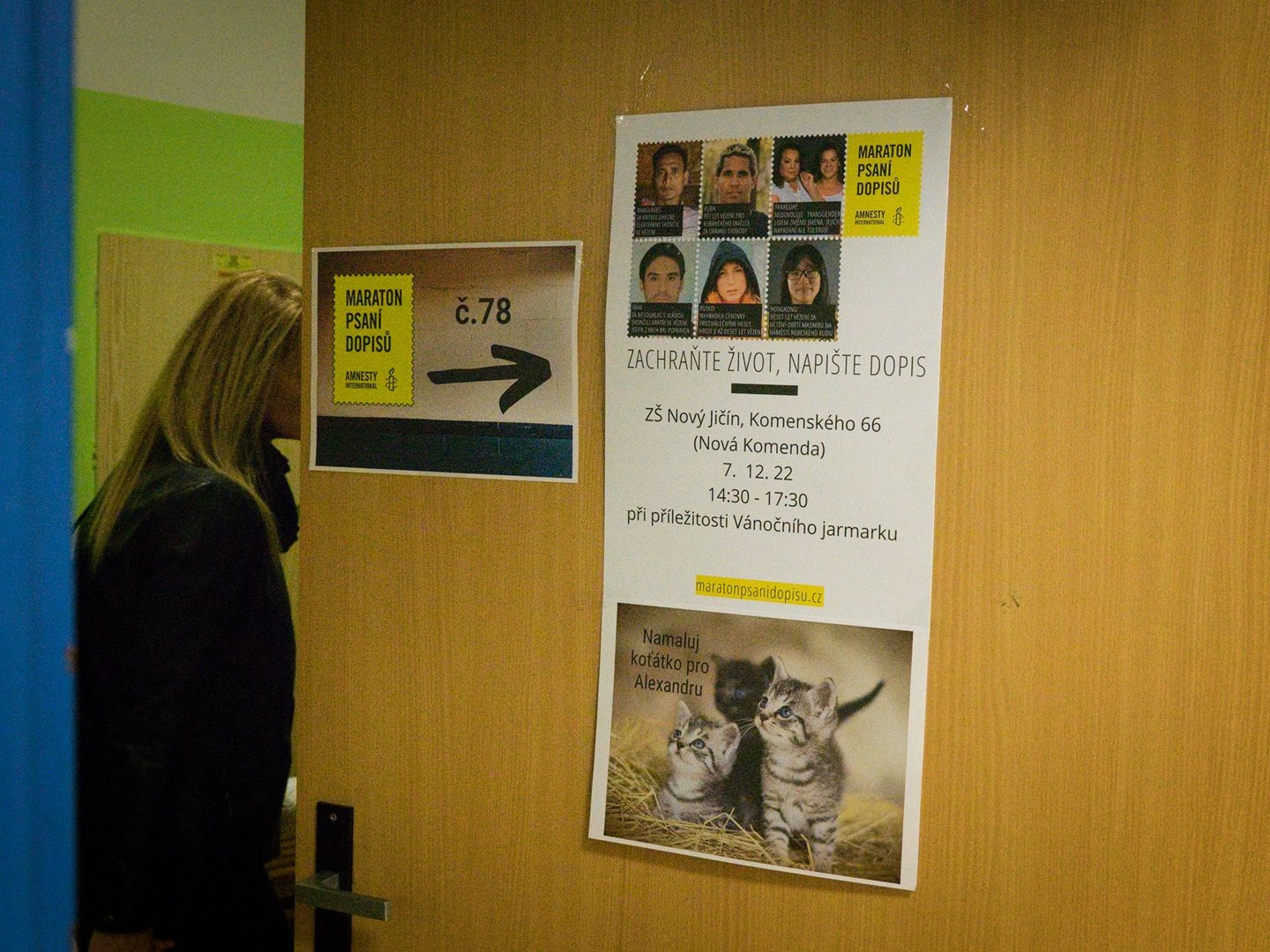 U příležitosti Andělského jarmarku proběhl na naší škole Maraton psaní dopisů. Organizace Amnesty International vyhledává každý rok lidi a komunity z celého světa, kteří čelí bezpráví či porušování základních lidských práv a vybere jednotlivé případy, které mohou mít dopad i na další případy či region. Jejich příběhy rozšíří do celého světa. Do Maratonu psaní dopisů jsme se zapojili poprvé, ručně psané dopisy poputují například do Číny, Ruska Paraguaye, na Kubu, do Iránu a Bangladéše.