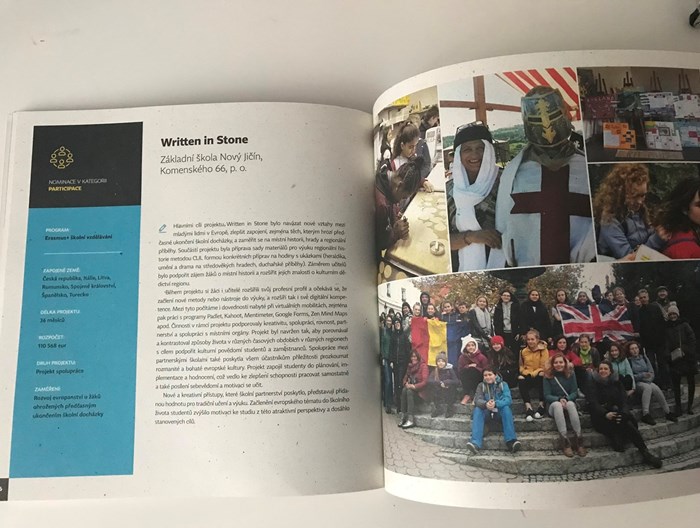 Mezinárodní projekty Erasmus mají na Nové Komendě již trvalé místo. Naše škola dlouhodobě podporuje mobility žáků i zaměstnanců, a to nejen krátkodobými, ale také dlouhodobými projekty. Jednou z dlouhodobých aktivit byl i tříletý projekt Written in Stone, který skončil v roce 2022. Projekt byl velmi rozsáhlý, zahrnoval mnoho aktivit a byl vytvořen a koordinován právě naší školou. Společně propojil sedm zemí, Česko, Británii, Itálii, Španělsko, Litvu, Rumunsko a Turecko. Cesta projektu nebyla jednoduchá, běžné mobility jsme kvůli pandemii museli upravovat na hybridní online návštěvy, i přesto jsme si ho však velmi užili.