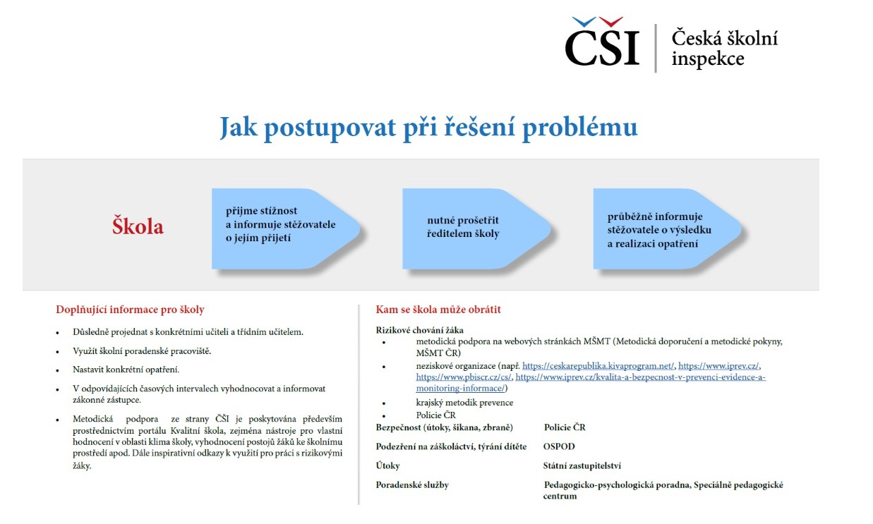 V návaznosti na metodický pokyn zaslaný školám informujeme o postupu řešení problémů v následujícím schématu....